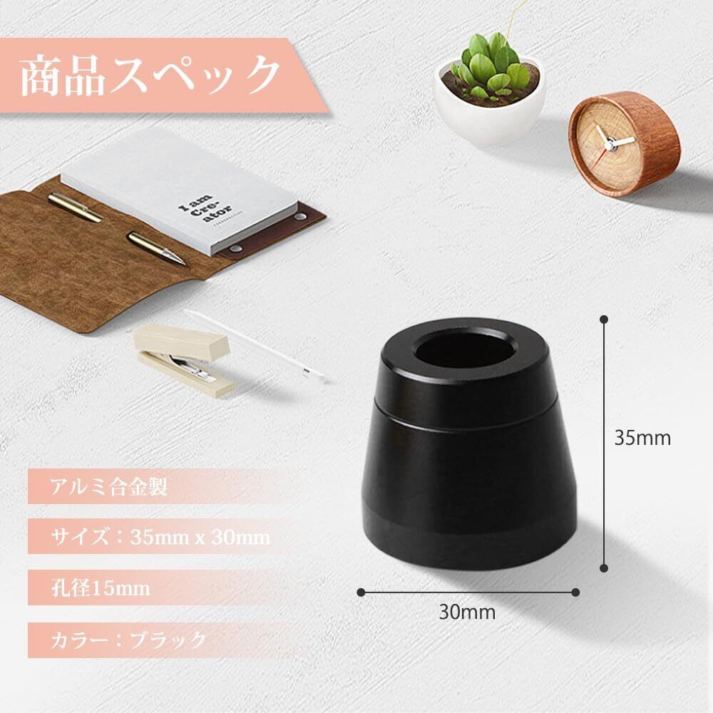 1. 【商品スペック】アルミ合金製 、サイズ:35mm x 30mm、孔径15mm、カラー:ブラック。