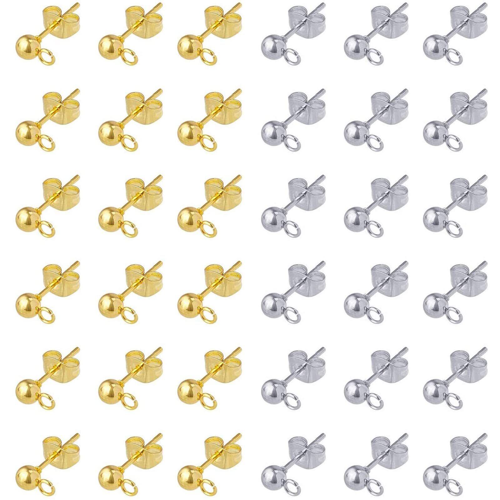 サージカル ステンレス カン付き ピアス パーツ 3mm ピアス 手芸 パーツ 丸玉 キャッチ付き ゴールド シルバー 40個 セット金具 素材