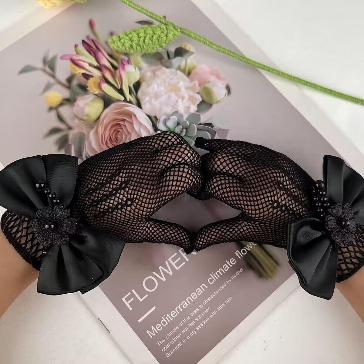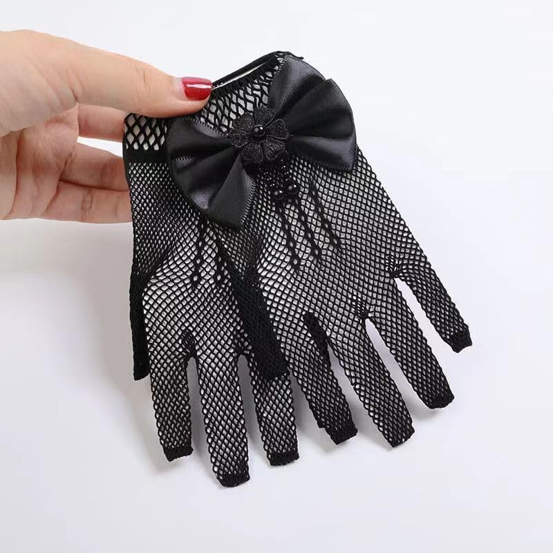 【特価セール】[Kingsie] 子供 女児ドレス手袋 メッシュ 女の子 ブライダル 薄手 レースメッシュ 可愛い リボン付き 蝶結び おしゃれ レディース ブラック ホワイ アクセサリー | gsmshop