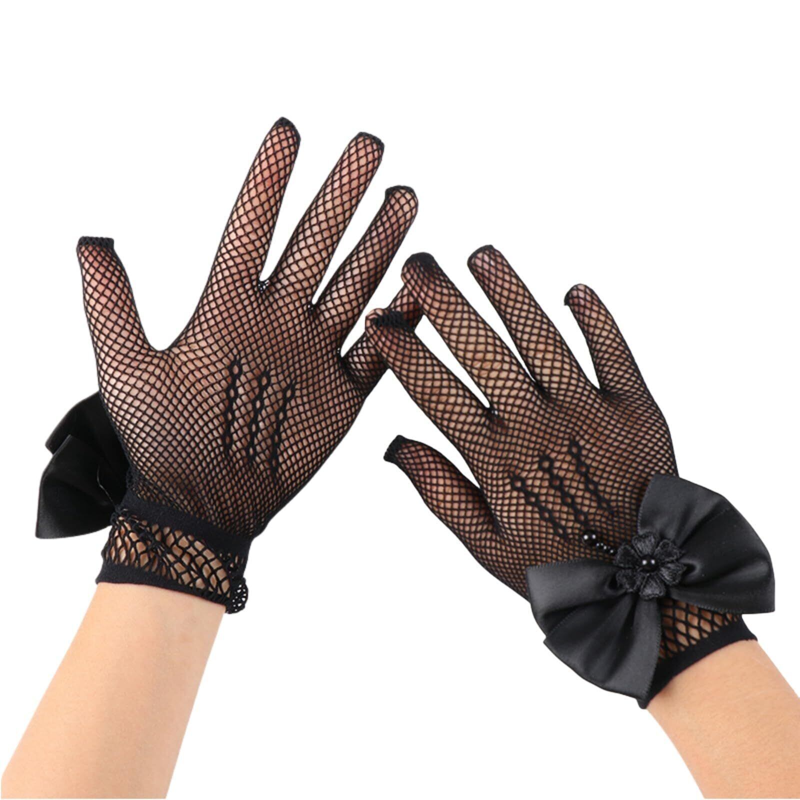 [Kingsie] 子供 女児ドレス手袋 メッシュ 女の子 ブライダル 薄手 レースメッシュ 可愛い リボン付き 蝶結び おしゃれ レディース ブラック ホワイ アクセサリー