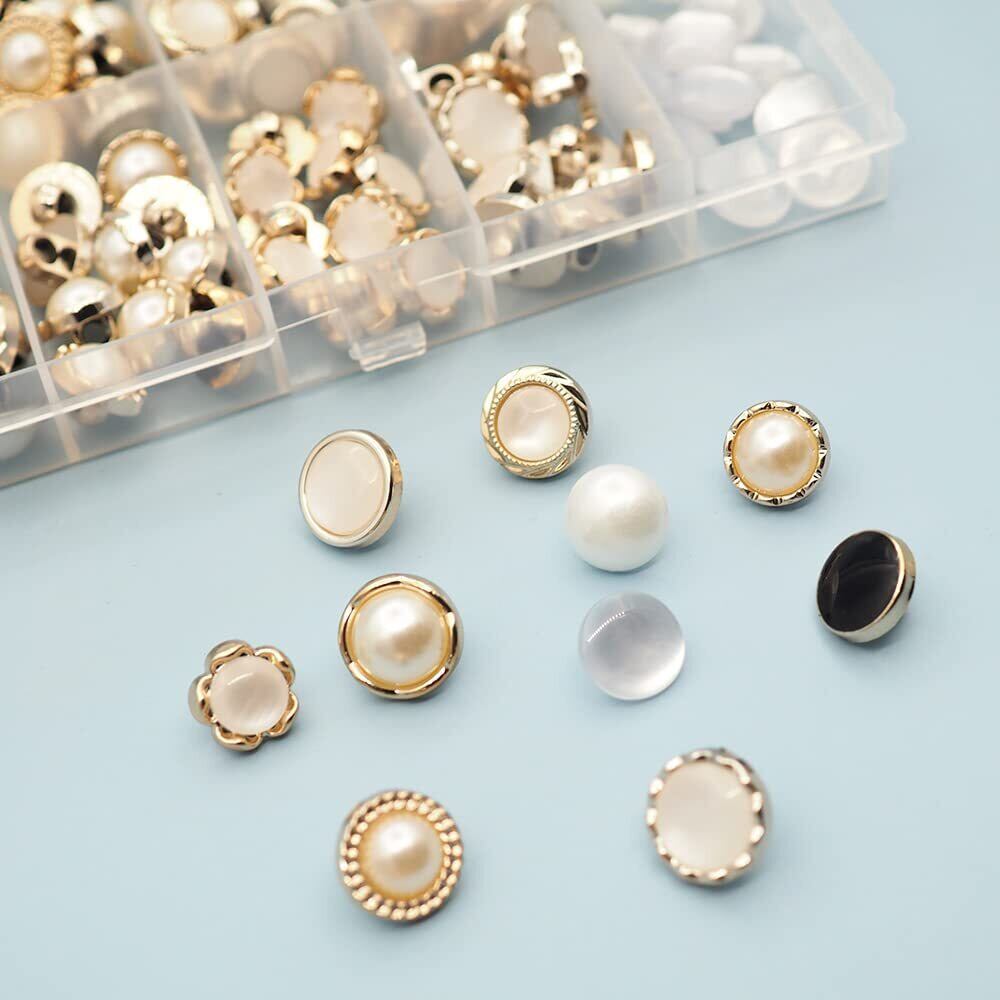 【多彩なサイズとカラーが魅力的!】: セット内容には、11mm、11.5mm、12.5mm、13mmの4サイズと、ブラック、ホワイト、ゴールドのカラーバリエーションが含まれています。これにより、さまざまなデザインやスタイルに合わせて最適なボタンを選ぶことができ、DIYやハンドクラフトの創造力を最大限に引き出します。