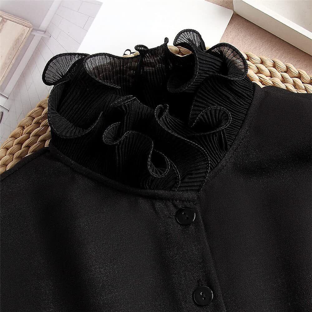 【あなたのスタイルを格上げするアイテム!】: この「スウィートフリルフェイクスタンドカラー」は、おしゃれと機能性を兼ね備えた優れたデザインのハイネックシャツです。シフォン素材の柔らかな風合いが特徴で、重ね着スタイルを楽しむための取り外し可能なデザインとなっており、さまざまなシーンで活躍します!