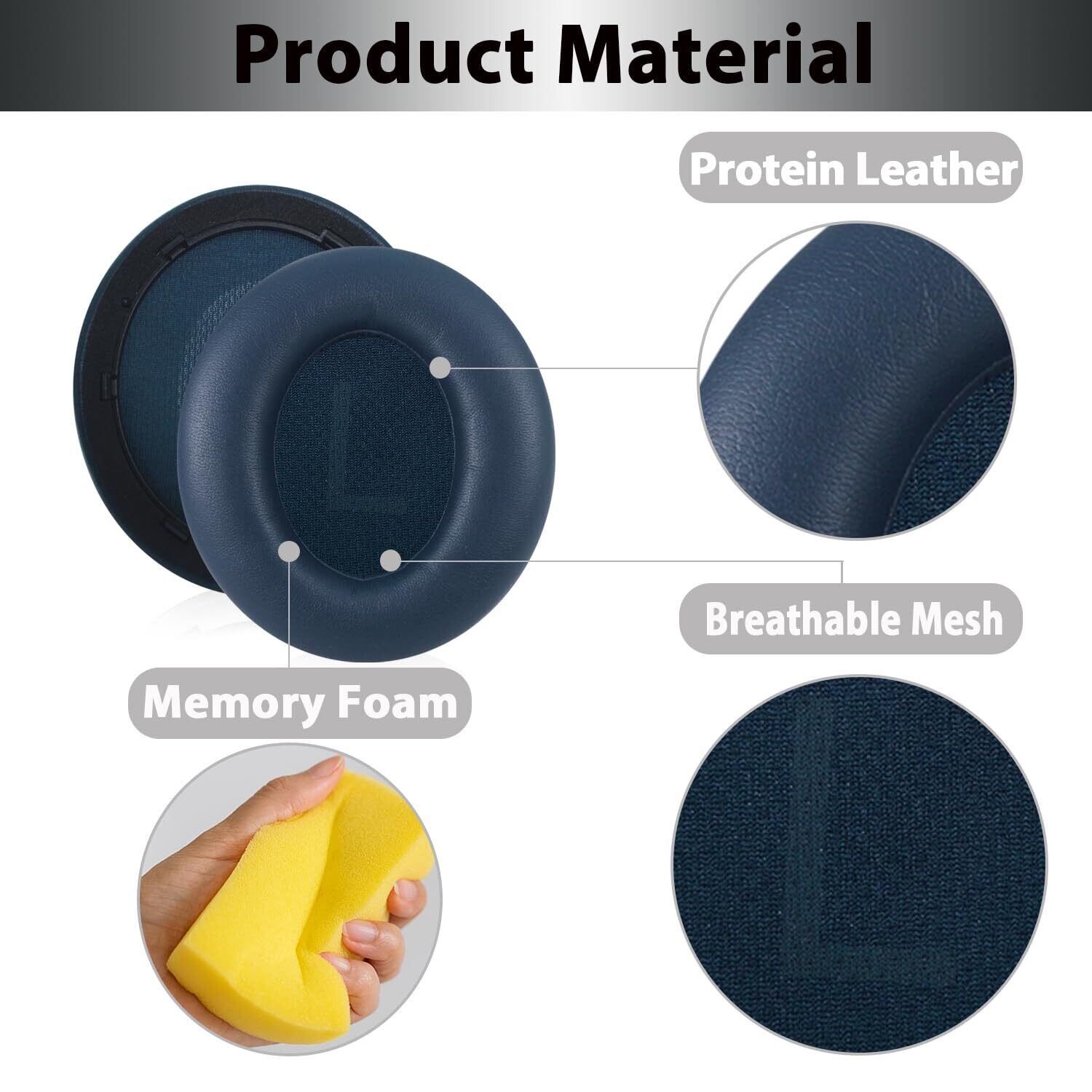 【高品質素材】当社のイヤークッションは、ノイズキャンセリングメモリーフォーム、シルクのようなプロテインレザーで作られており、外部のノイズを低減し、肌に完璧にフィットし、新しい体験をもたらします。