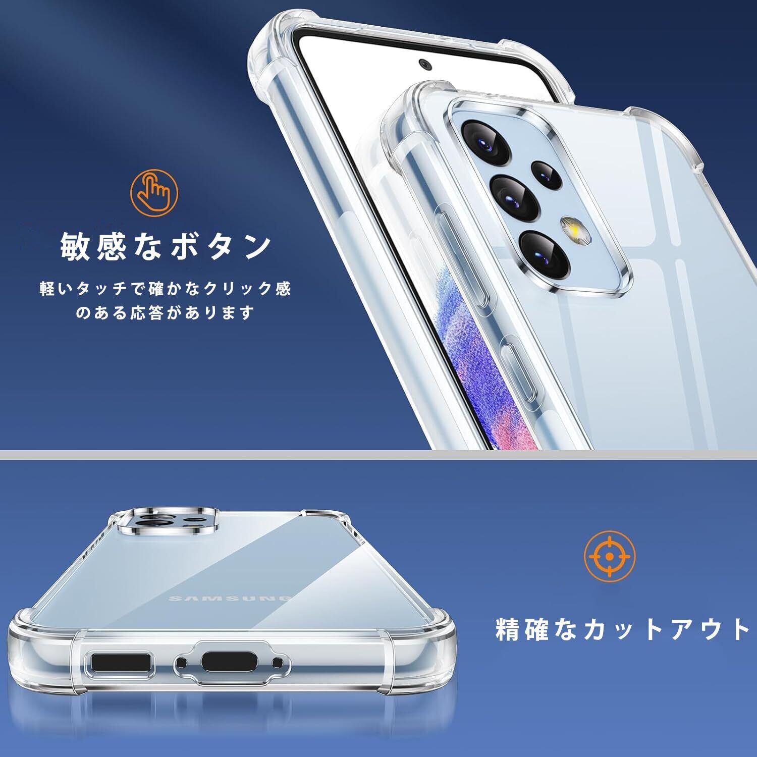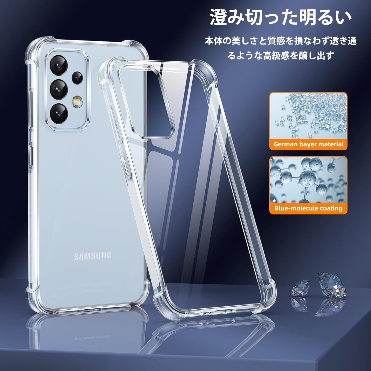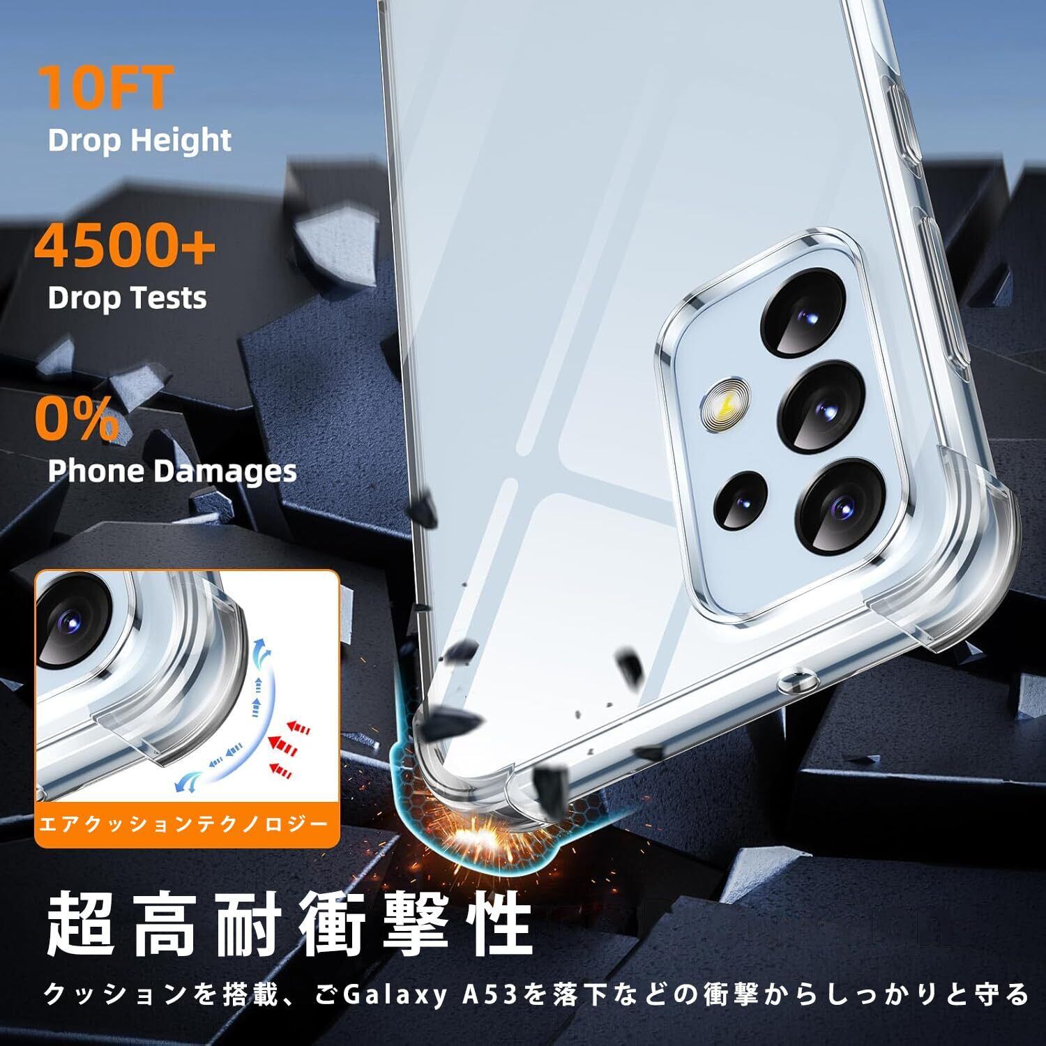 【高い透明度】 透明度が高く、鮮やかな色をそのまま映し出すことができ、 本体のオリジナルのカラーを損ねません。ケースの端はダイヤL Galaxy A53 5Gモンドカットプロセスを施すことでより洗練された美しい外観となっています。ギャラクシーa53 5g の美しさはそのままに、保護しているのです。