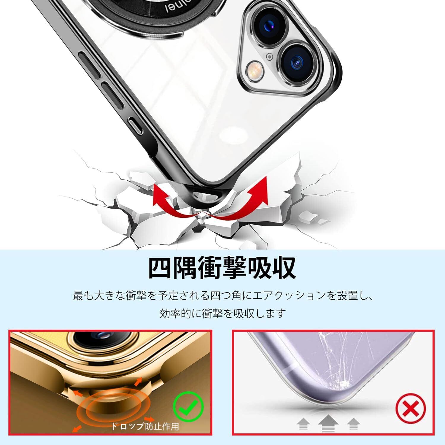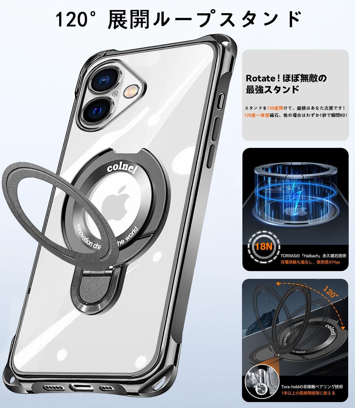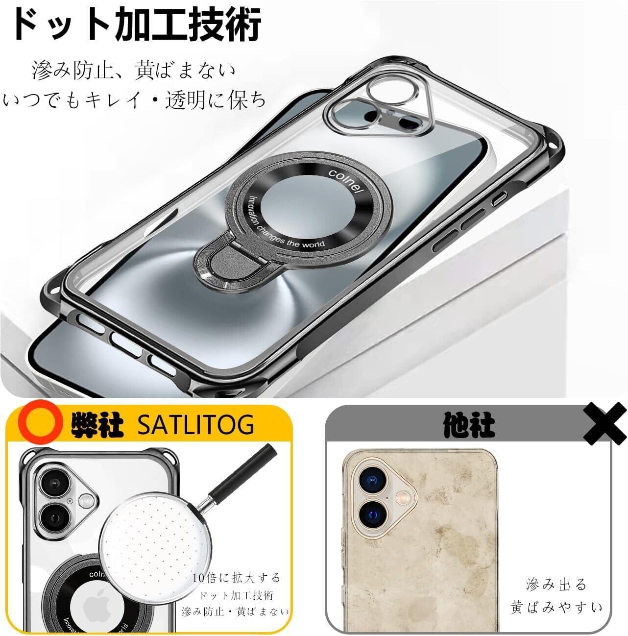 iPhone 16 ケース リング付き アイフォン16 ケース MagSafe対応 クリア iPhone16カバー 車載ホルダー ワイアレス充電 耐衝撃 磁力強 全面保護 指紋防止 マグネット搭載 多機能 スタンド 薄型 軽 米軍MIL規格 TPU 透明 スマホケース 黄変防止 めっき加工技術 (ブラック)(出荷には携帯ストラップは含まれていません)