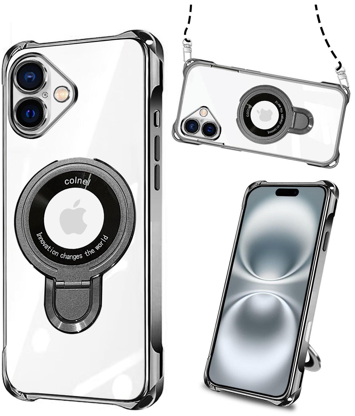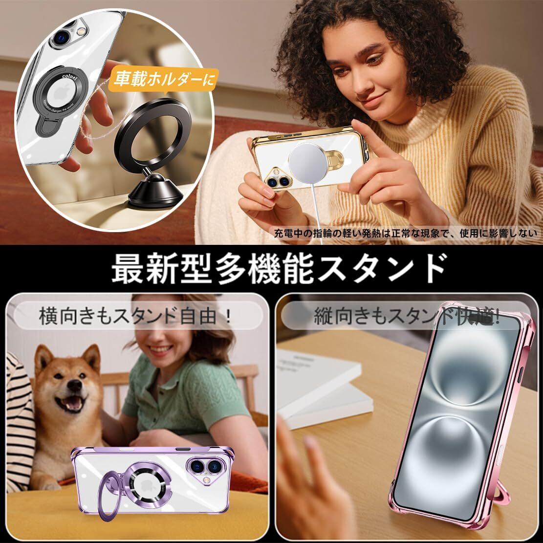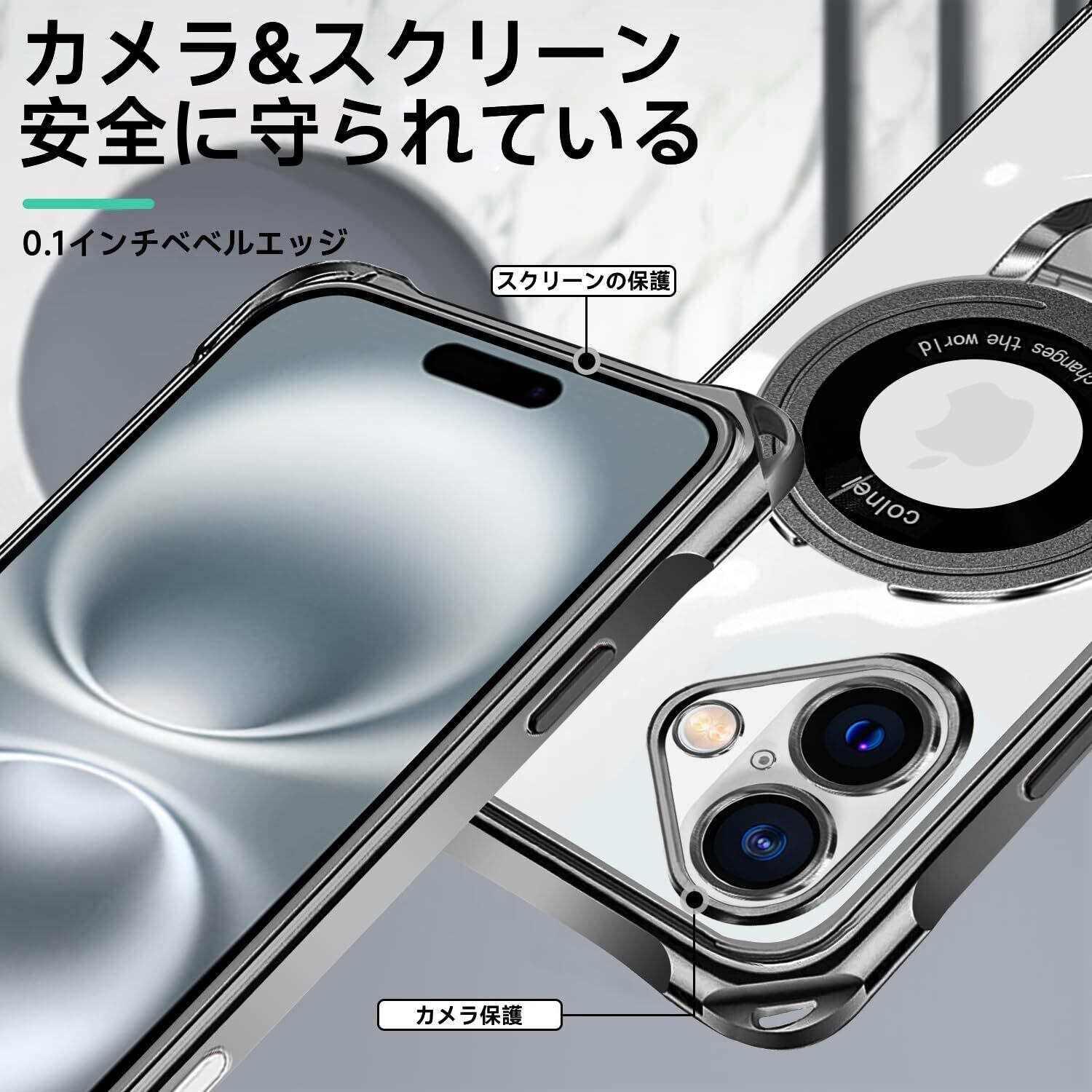 iPhone 16 ケース リング付き アイフォン16 ケース MagSafe対応 クリア iPhone16カバー 車載ホルダー ワイアレス充電 耐衝撃 磁力強 全面保護 指紋防止 マグネット搭載 多機能 スタンド 薄型 軽 米軍MIL規格 TPU 透明 スマホケース 黄変防止 めっき加工技術 (ブラック)(出荷には携帯ストラップは含まれていません)