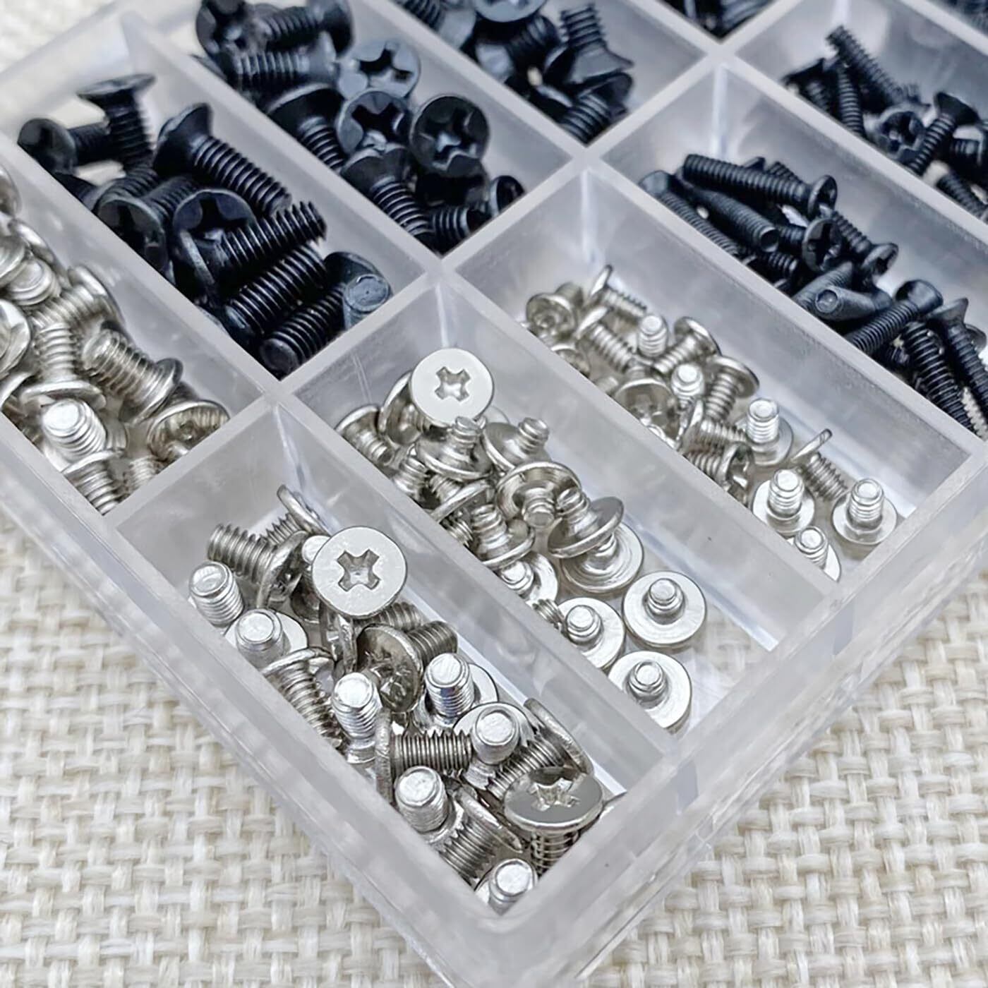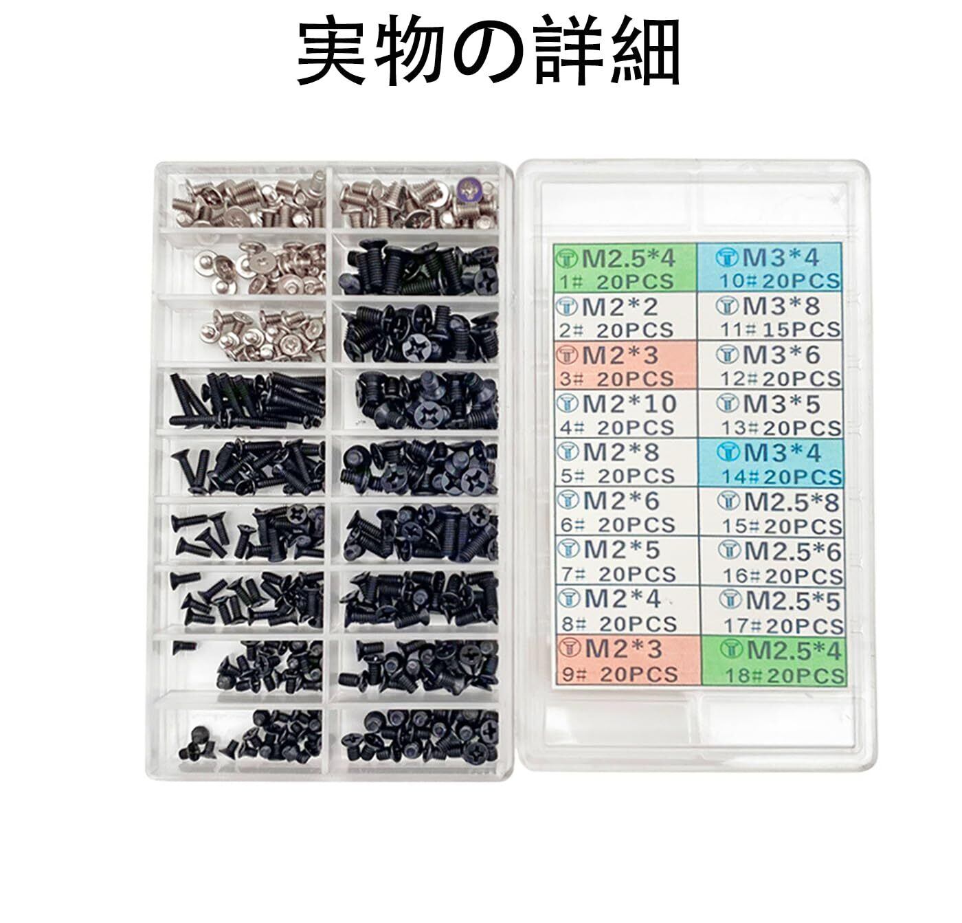 【内容】 このセットには、ノートPC用のM2、M2.5、M3ネジとHDD M.2、SSD固定用の平ネジが含まれています。合計355本のネジが収納ケースに入っています。