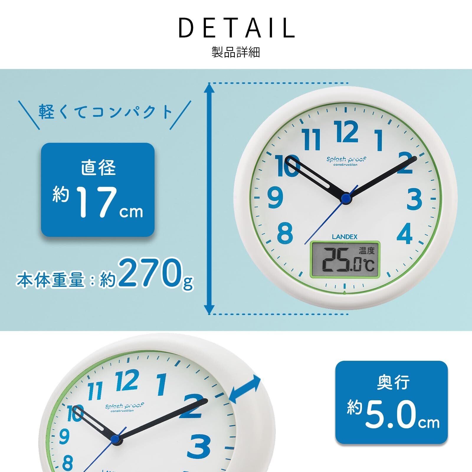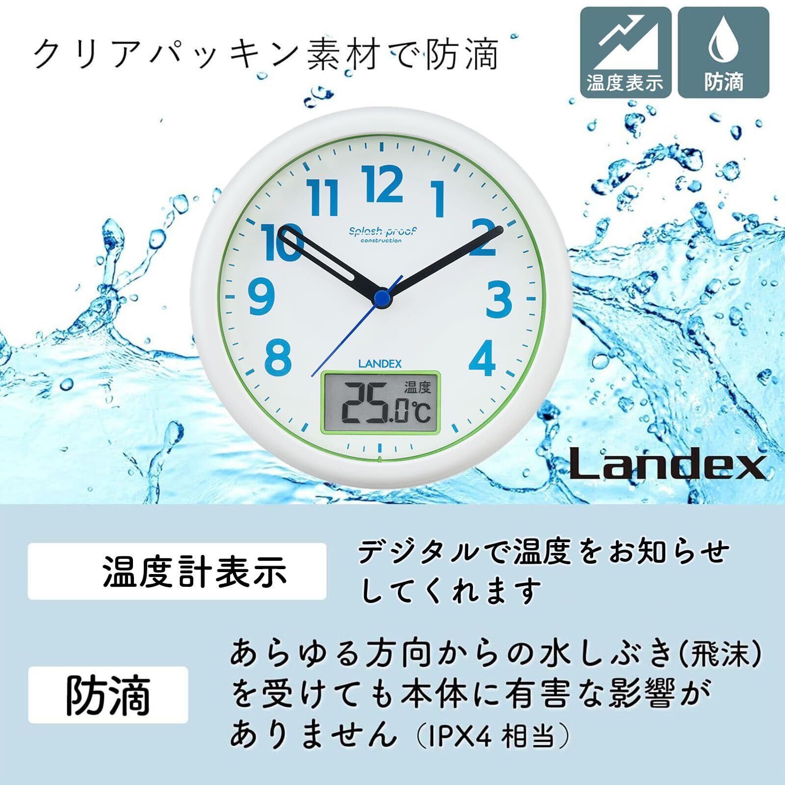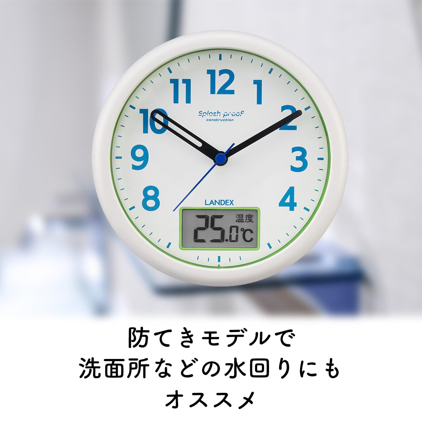 ランデックス(Landex) バスクロック 温度表示 デジアナ 防水 17cm アクアディズ 置き掛け兼用 ホワイト グリーン YT5311WH