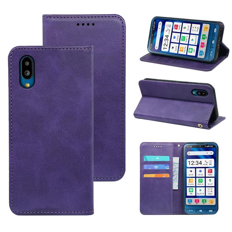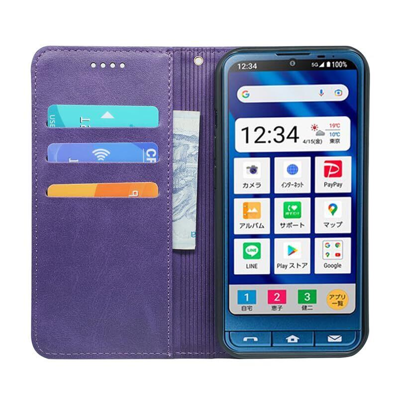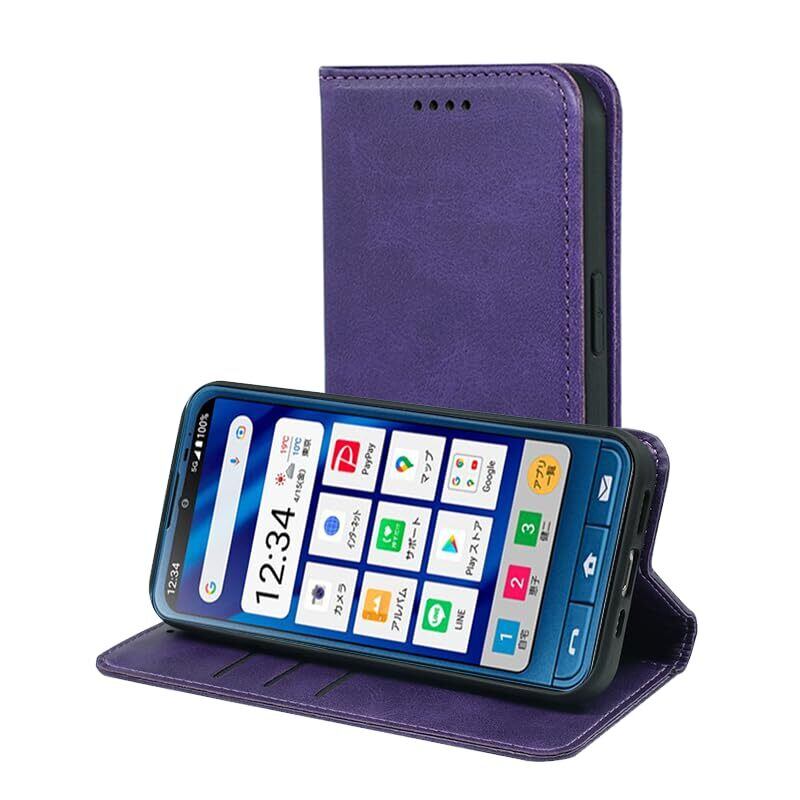 【スタイリッシュな手帳型ケース!】: この「シンプルスマホ対応ケース」は、高品質なPUレザーを使用した手帳型ケースです。深い紫の華やかなデザインは、シンプルなスマートフォンを一層引き立て、持つ人のセンスを際立たせます!
