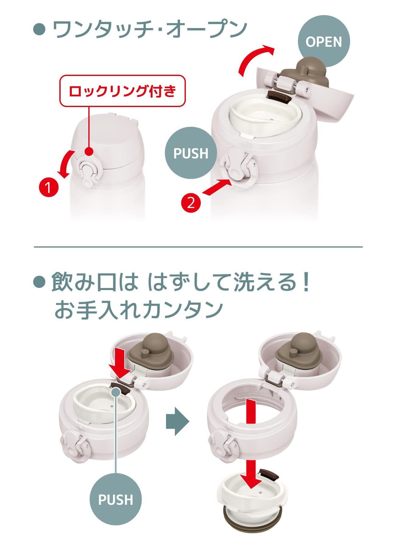 【お手入れ簡単な飲み口!】: 飲み口が外せる設計になっているため、清掃も簡単です。通常の使用時でも、飲み物を注ぐのがさらにスムーズになります。衛生面でも優れており、安心してご使用いただけます。
