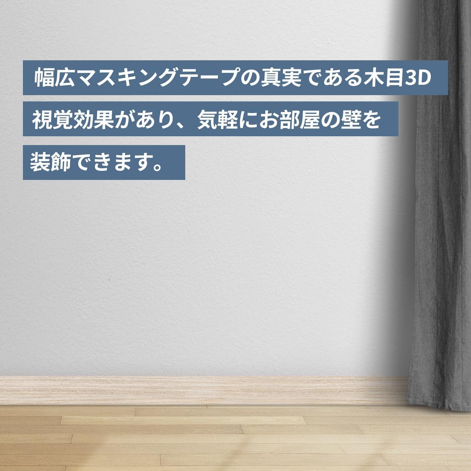 【用途広い、家具や壁をリフォームする】幅広マスキングテープの真実である木目3D視覚効果があり、気軽にお部屋の壁を装飾できます。壁、窓枠、巾木、襖や扉、ドア枠、引き出し、本棚、古い家具、玄関、リビング、キッチン、トイレ、お風呂、洗面所などの場所に使用できます。お気軽にお部屋の模様替え、気分転換を楽しめましょう!