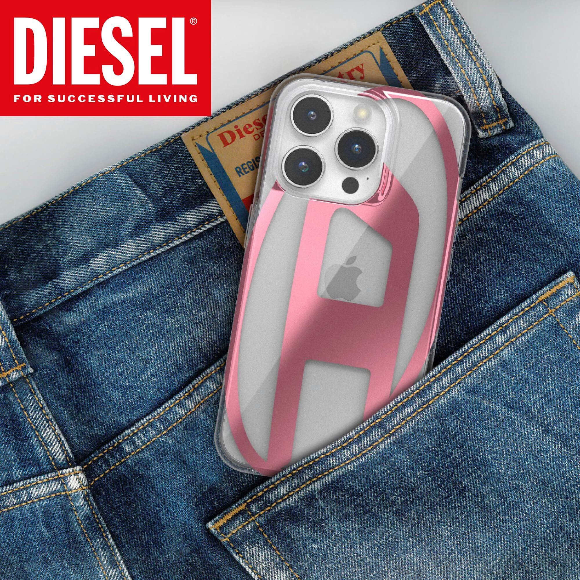 【数量限定】DIESEL iPhone14ケース / iPhone13ケース Dロゴ クリアケース(ディーゼル iPhone 14 / 13 ケース ブランド クリア x メタリックピンクロゴ) | gsmshop