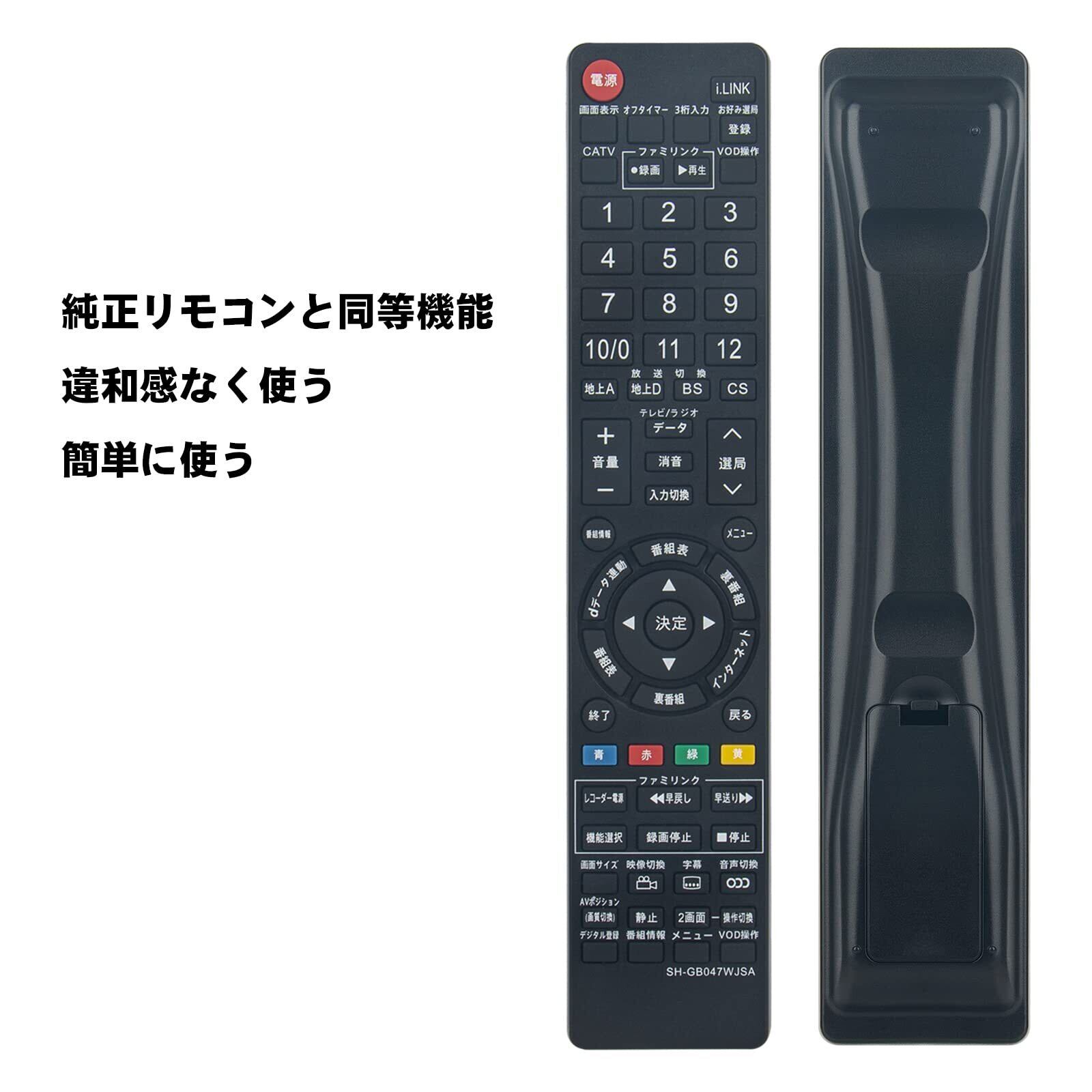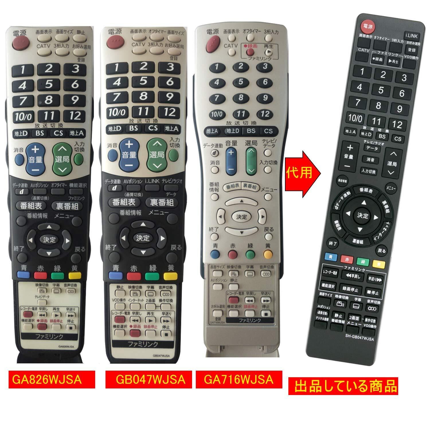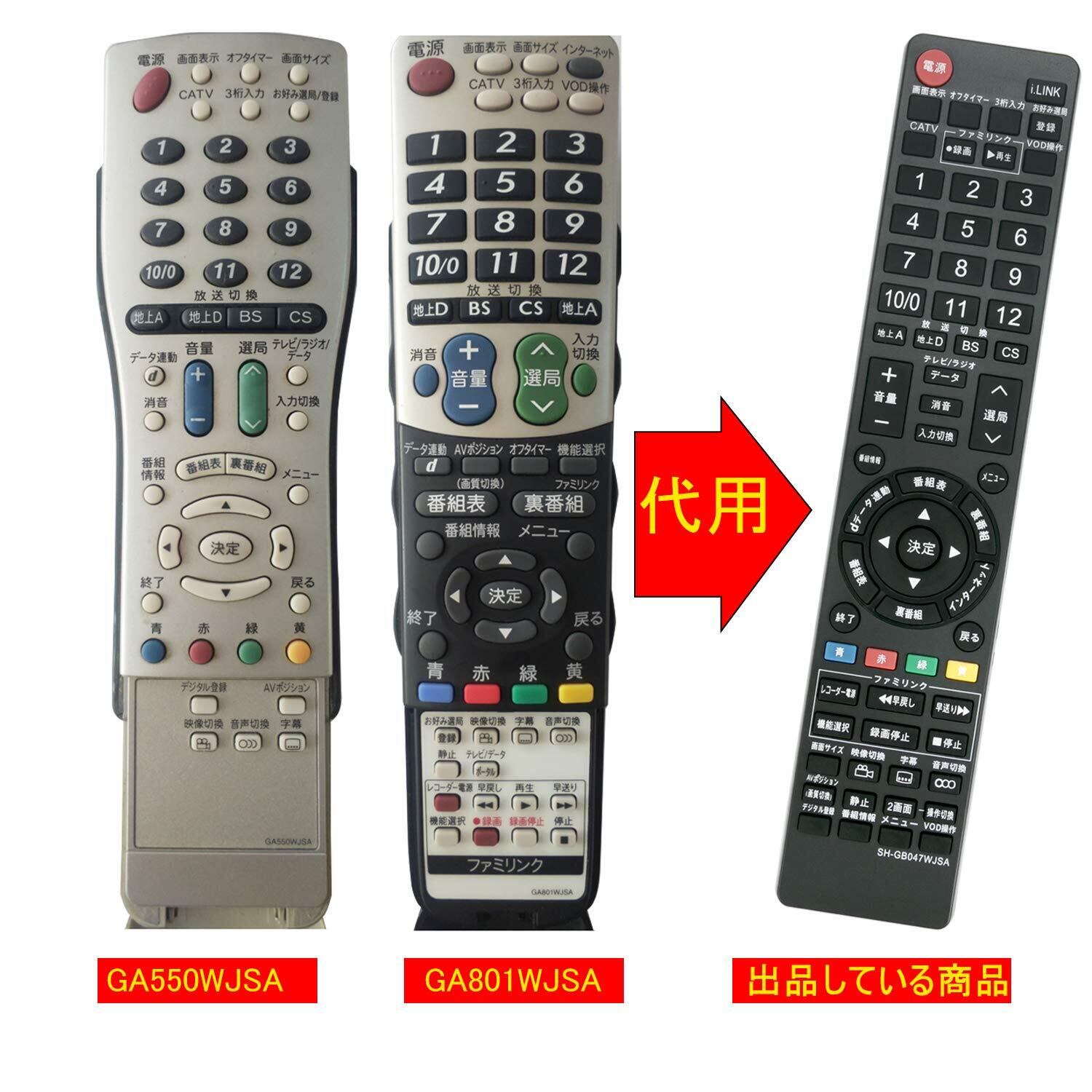 [1]設定不要です電池を入れるとすぐに使えるかんたんなリモコンです。ご注意:この商品は汎用リモコンではなく、「GA826WJSA GB047WJSA GA716WJSA GB335SA GA560WJSB GA632WJSA GA765WJSA GA812WJSA GA801WJSA GA550WJSA GB046WJSA GA661WJSA GA567WJSA GA654WJSA GA491WJSA GA514WJSA GA548WJSA GA750WJSA GA615WJSA GA560WJSA」の代替品のみとして使用できますのでご了承下さいますようお願い申し上げます。[2]電池(単4*2)は付属しておりませんので別途お買い求めくださいませ。[3]純正リモコンの主な機能を網羅しており、軽くて使いやすいです。[4]ご使用機種によっては当リモコンにないボタンがございます。(詳細は画像をご確認ください)[5]ボタン配列は純正リモコンと少し異なりますのでご了承ください。(ボタンの詳細情報は画像をご覧になってください。)