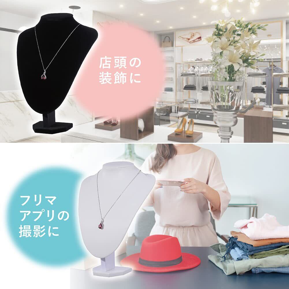 【ディスプレイとしても一流のクオリティ!】: このトルソーは、ベロア調の滑らかな質感が特徴で、見る人の目を引きます。また、どんなインテリアにもマッチするシックな色合いで、店舗やイベントのディスプレイにもなじみます。美しいデザインのアクセサリーを、より魅力的に演出します。