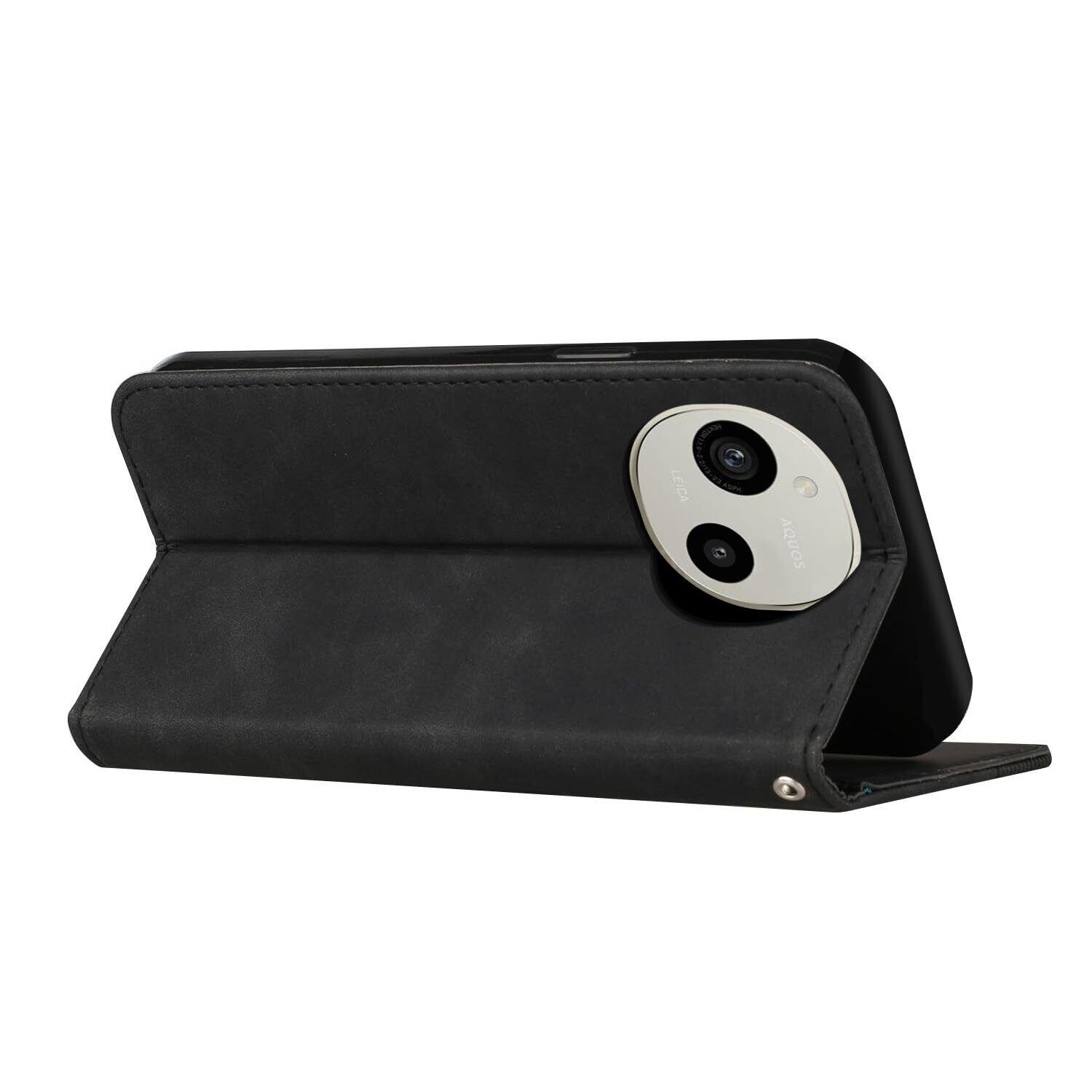 対応 AQUOS R9 ケース 手帳型 アクオス R9 財布型 カバー SH-51E 手帳型ケース LODROC スマホケース スタンド機能 カードポケット収納 耐衝撃 シャープ R9 ケース 手帳型 - 黒
