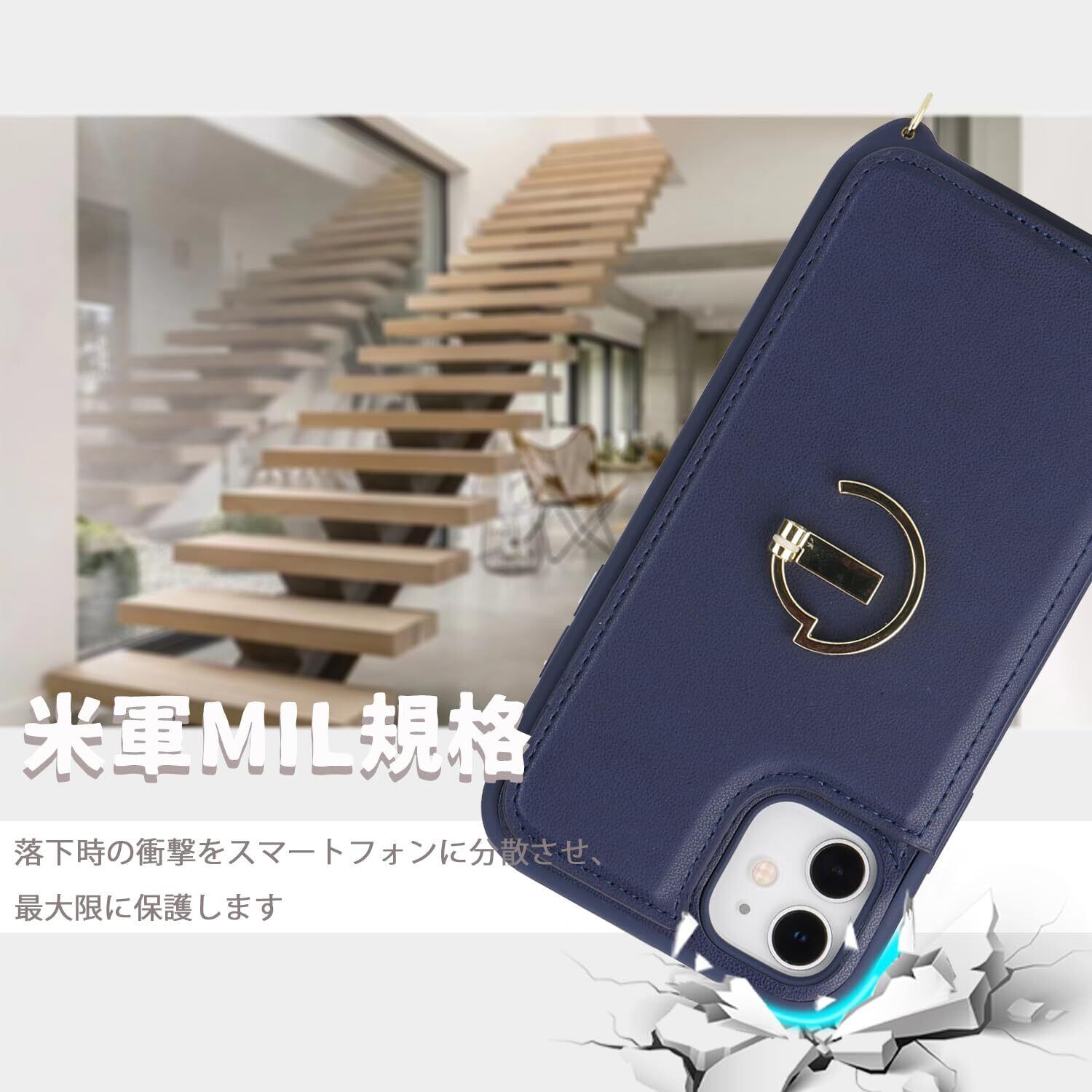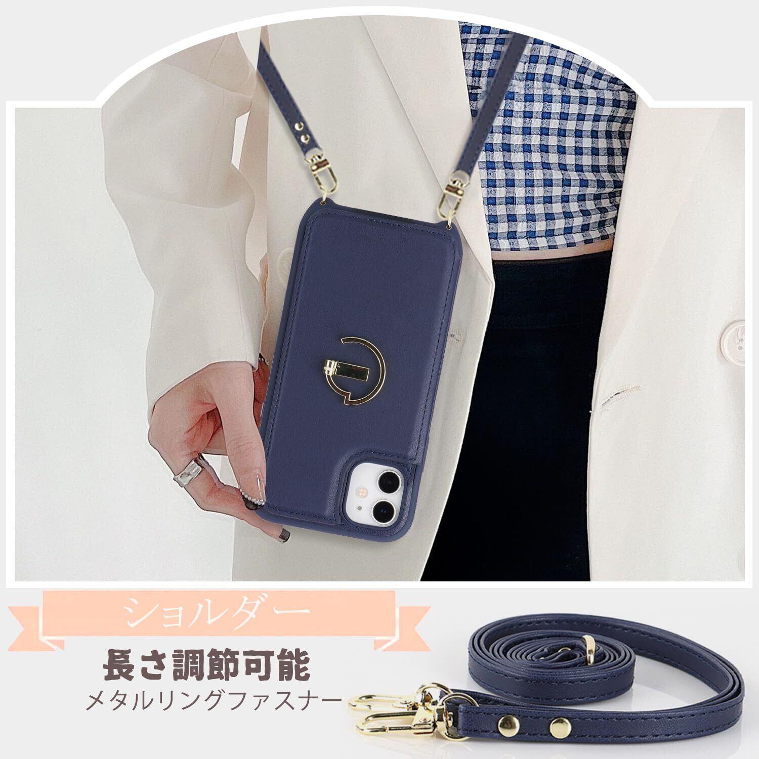 Havaya スマホショルダー iPhone11ケース iphone 11 ケース スマホケースiphone11 ショルダー リング付き レザー 肩掛け カード収納(アイフォン11 /あいふぉん11/いphone11/アイホン11 6.1インチ対応)-ブルー