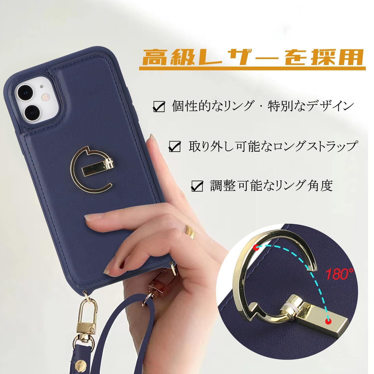 【2022最新】Havaya スマホショルダー iPhone11ケース iphone 11 ケース スマホケースiphone11 ショルダー リング付き レザー 肩掛け カード収納(アイフォン11 /あいふぉん11/いphone11/アイホン11 6.1インチ対応)-ブルー