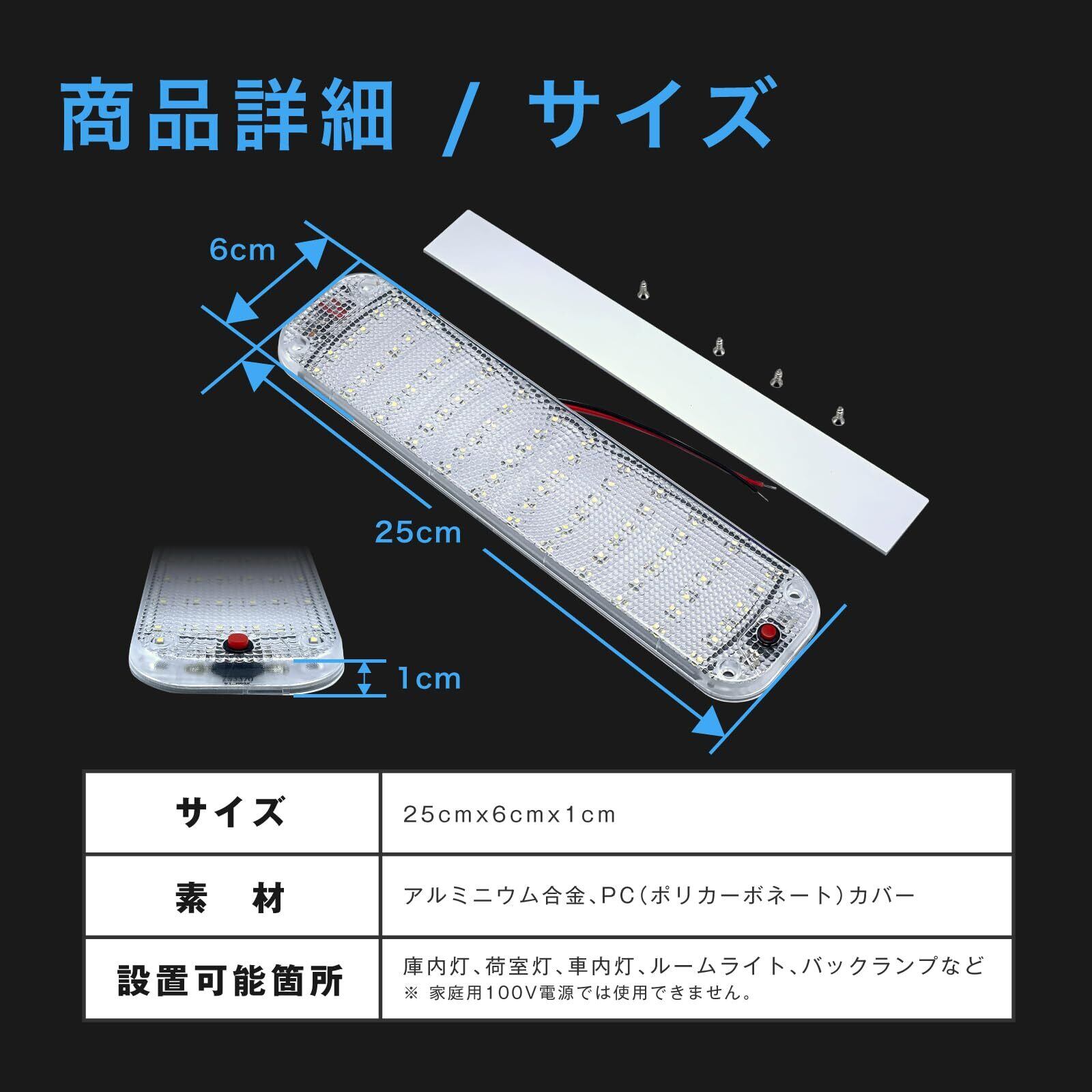 庫内灯、荷室灯、車内灯、ルームライト、バックランプなど幅広い用途でご使用いただけます。薄型デザインで、狭いところにも取付可能です。