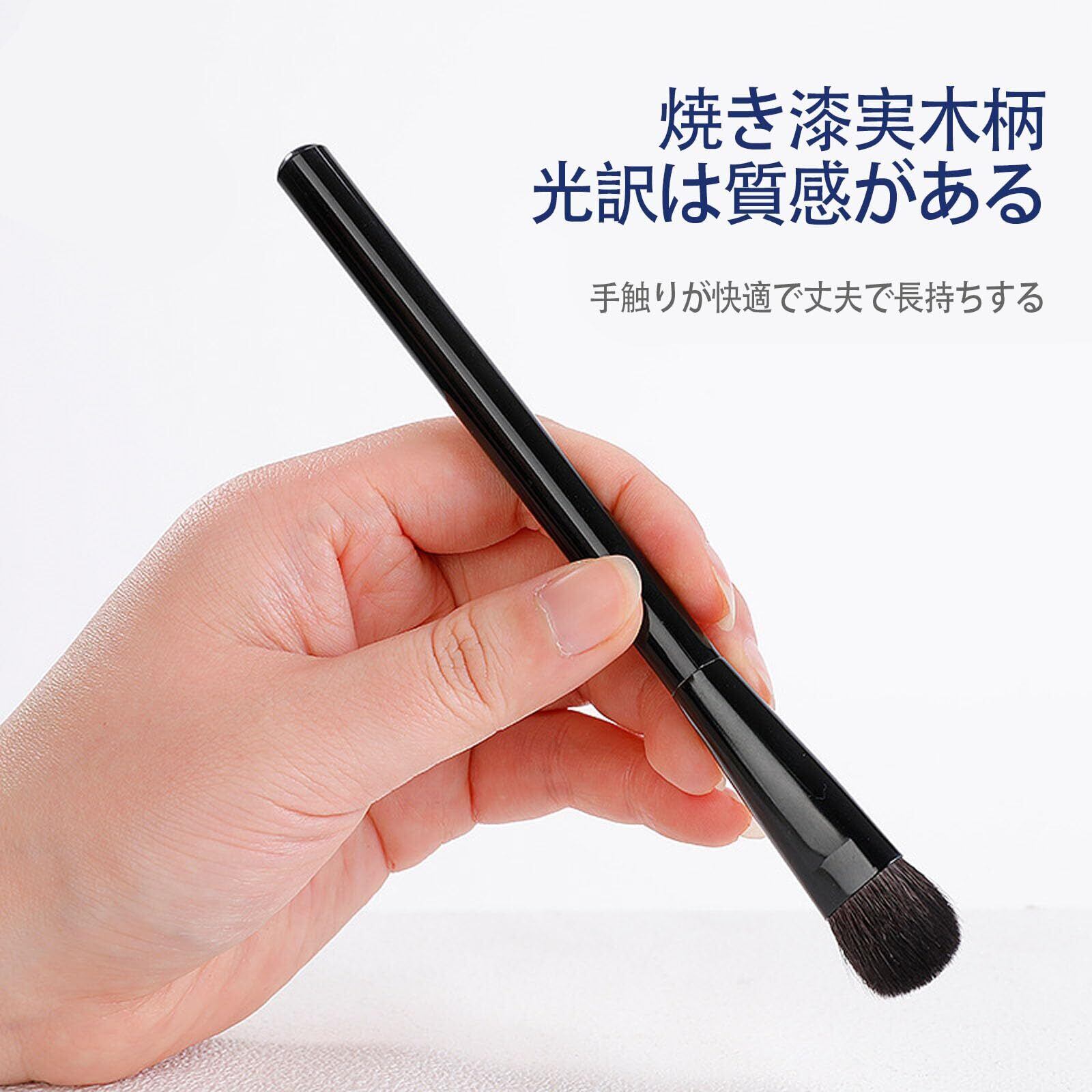 【良質な材質】:アイシャドーブラシは毛は細くて柔らかなものを厳選しており、ブラックの漆塗りの取手は木材を使用、持ちやすく、光沢のあるゴールドのアルミニウム管を使用し。平たい形状の筆なので、上まぶただけでなく下まぶたにも綺麗に色を入れられます。