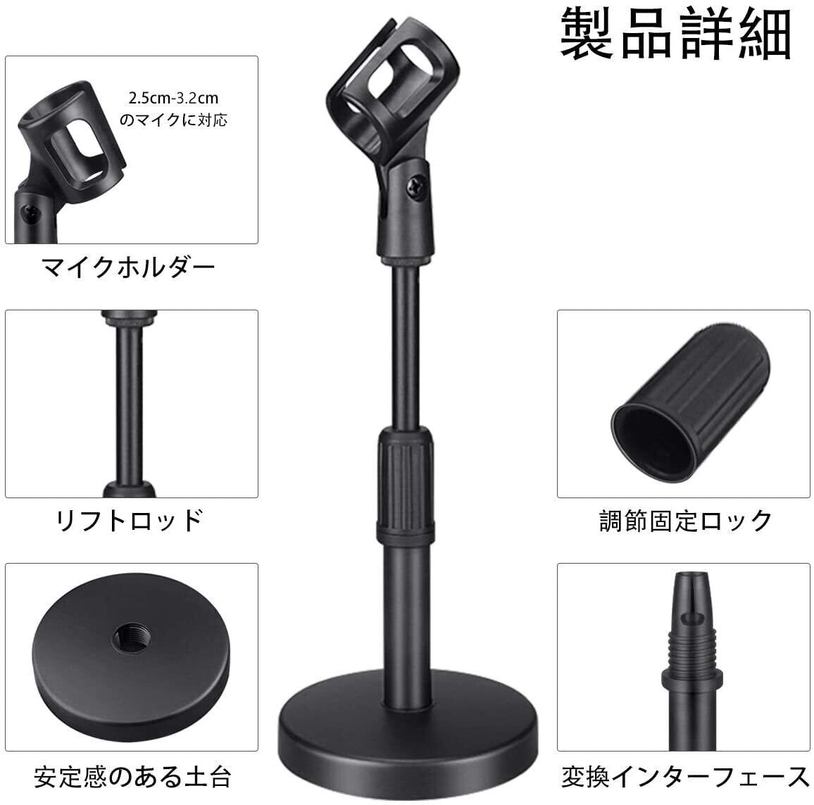 卓上マイクスタンド 高さ調節可能 安定 ブラック マイクホルダー付