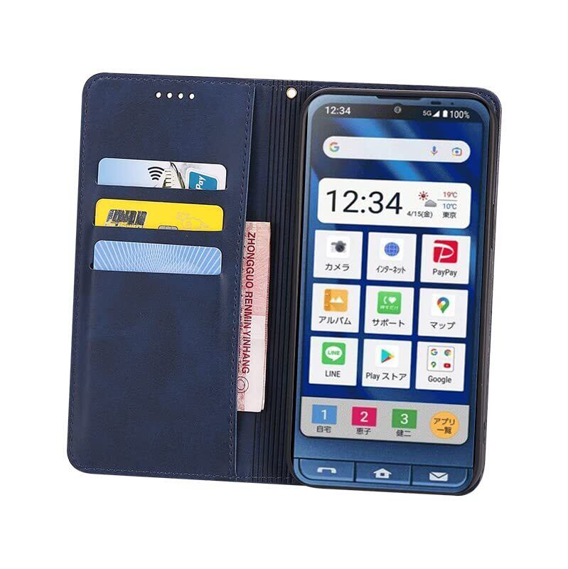 適用 シンプルスマホ6 / シンプルスマホ7 ケース 手帳型 適用 A201SH / simple sumaho6 /simple sumaho7/ BASIO active SHG09/ BASIO active2 SHG12 ケース 手帳型 カバー PUレザー カード収納 財布型 耐衝撃 ケース マグネット スタンド機能付き (深い青)