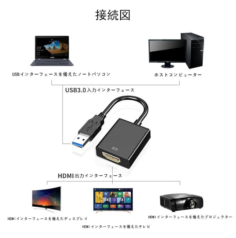 Windows Windows 7.8.10.11/XPシステムをサポートします。 本製品を使用する場合、変換アダプタをPC/ノートパソコンのUSBポートに挿入する必要があります。 usb hdmi 変換アダプタは、5Gbpsの伝送速度でUSB3.0の、ご注意ください:Vista/ Firestick / Linux/Chromeはサポートしません