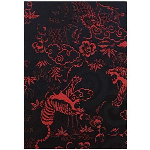 千糸繍院 御朱印帳XL【黒炎龍虎】西陣織 金襴装丁/刺繍文字 蛇腹式48ページ 特大判 (金色刺繍文字/白色本文)