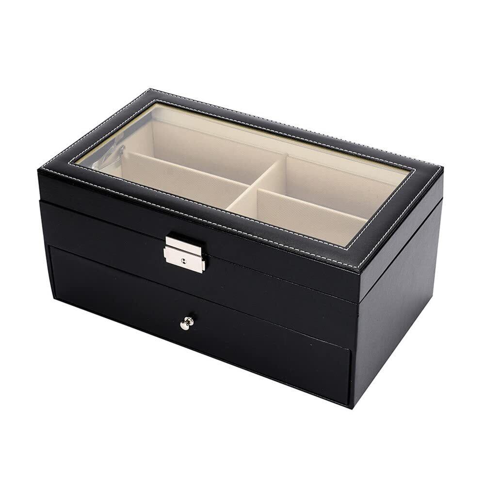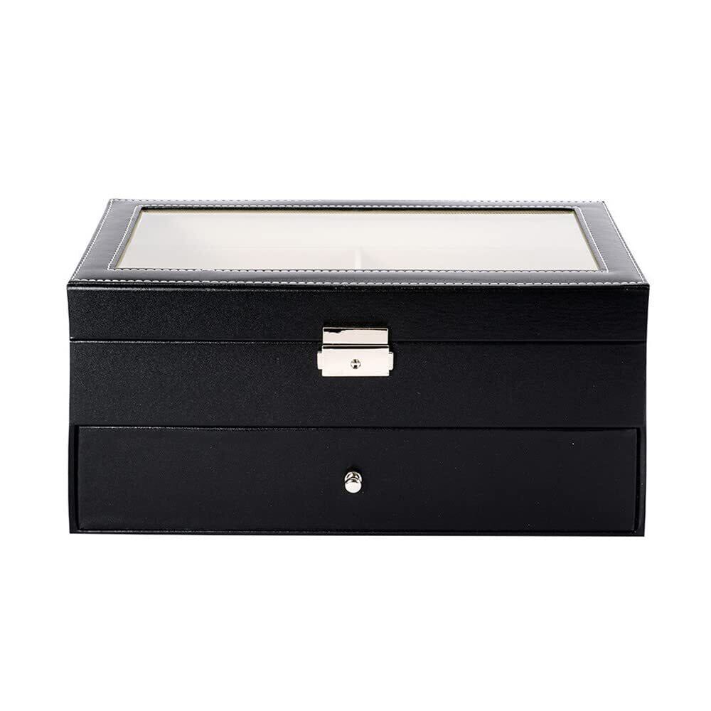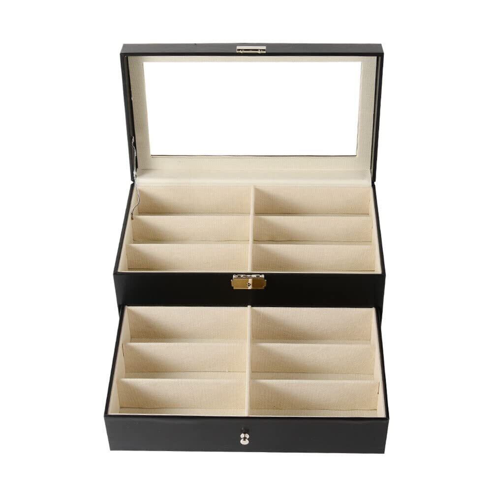【二段式で効率的な収納!】: 二段式のデザインにより、最大12本のメガネやサングラスをコンパクトに収納可能です。それぞれの個別のスペースは、大切なアイテムをしっかりと守り、傷や汚れからも安心して保護します。