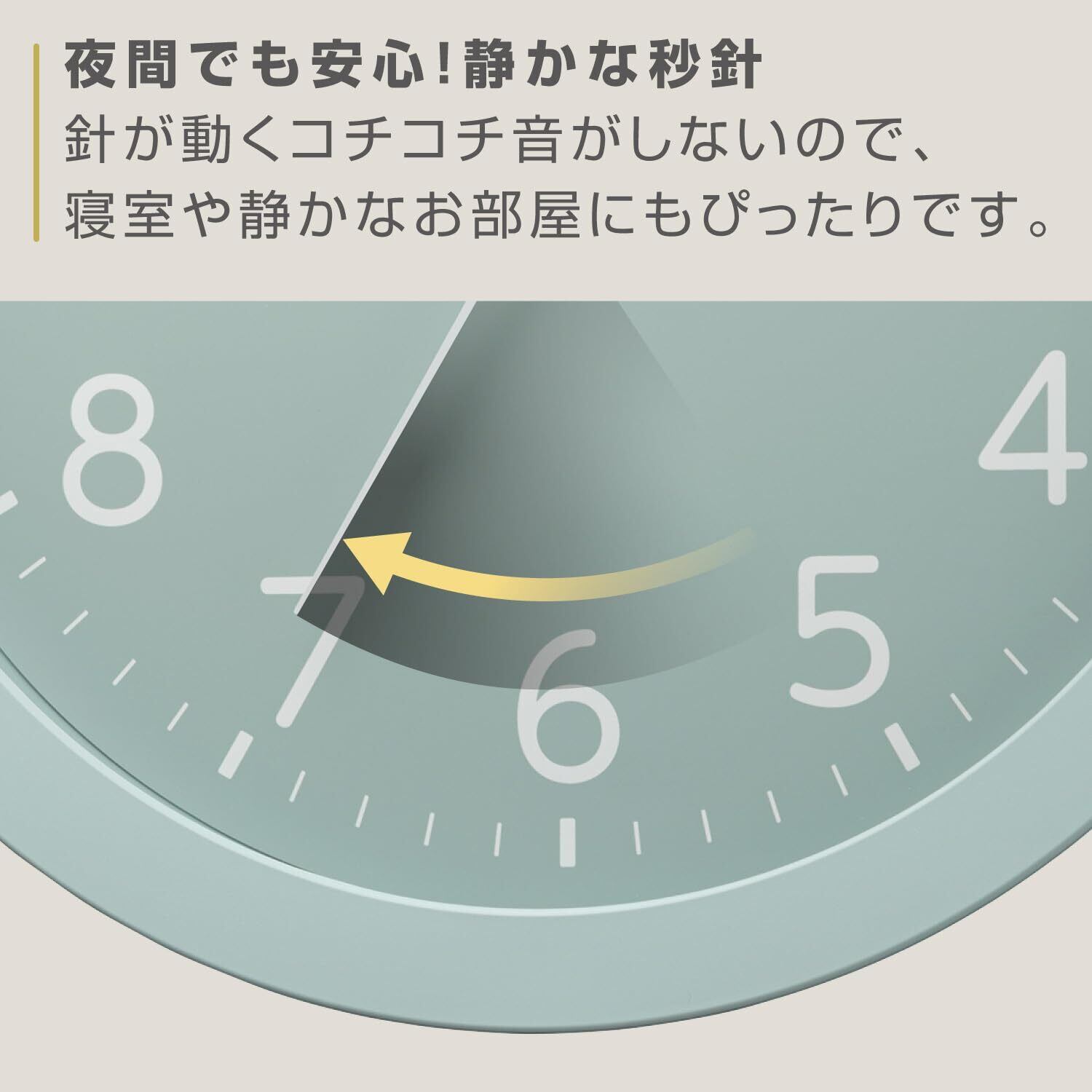 【おやすみを邪魔しない、静かな秒針】スーッと滑らかに動く連続秒針を採用。針が動くコチコチ音がしないので、寝室や静かなお部屋にもぴったりです。スムーズに動く秒針が、静かな眠りや集中時間をお手伝いします。
