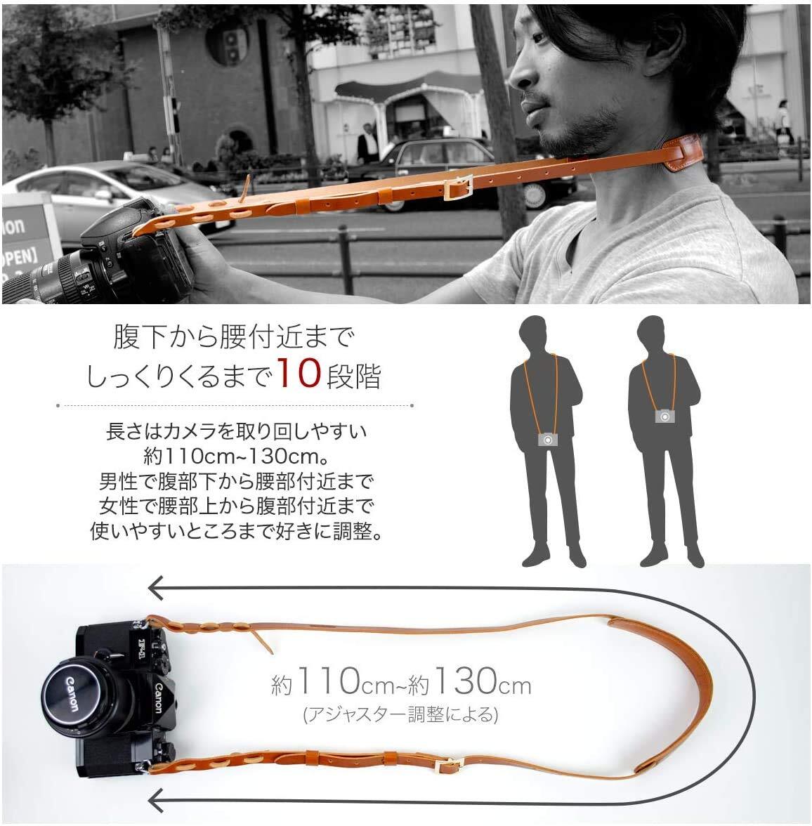 【カメラストラップ 10段階調整】 カメラを傷つけない、接続部に金具を使わないので大事なカメラを傷つけません。 人気 ブランド ならではのこだわりがつまったアイテムです。