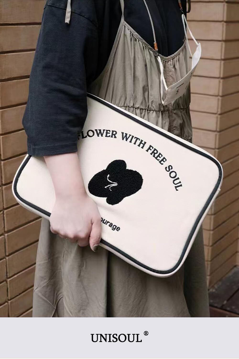 【シンプルでおしゃれなデザイン!】: UNISOULのパソコンケースは、ベージュカラーで洗練されたデザインが特徴です。13インチから13.3インチまでのノートパソコンにピッタリフィットし、ビジネスシーンやカジュアルな場面でも活躍します。