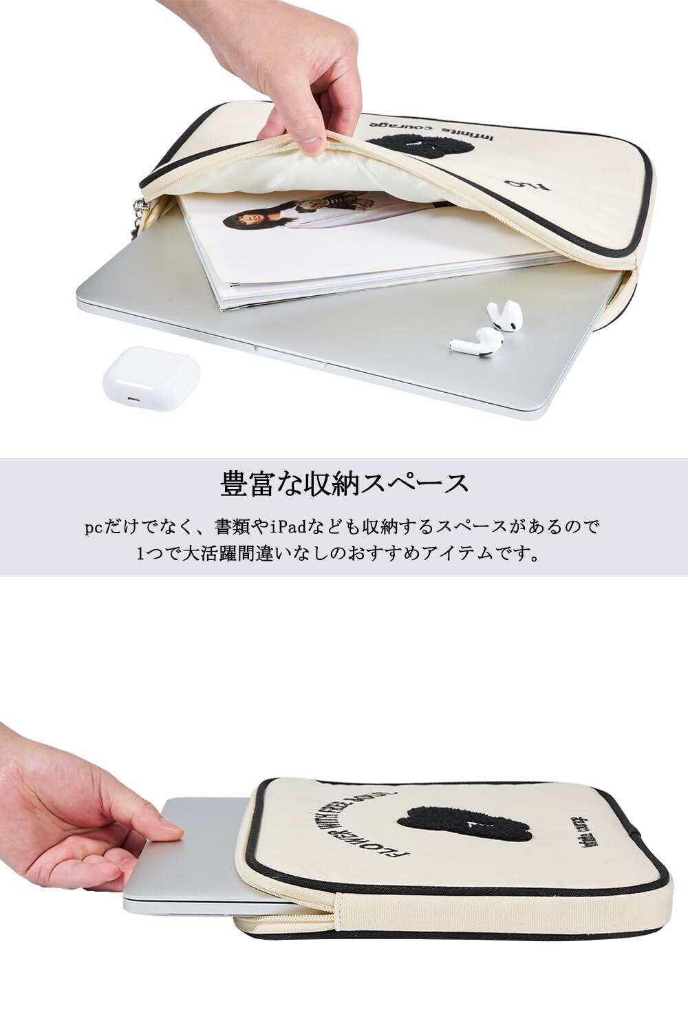 「衝撃も吸収しやい」緩衝材入りで傷や軽い衝撃からパソコンやタブレットを守る。A4冊子もすっぽり入るので、仕事や学校用におすすめ!