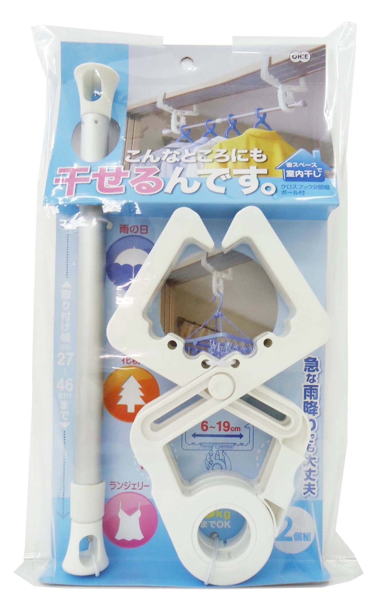 オーエ 洗濯 物干し ハンガー ホワイト 約縦24×横14.2×奥行1.7cm クロスフック ポール付 補助具 部屋干し 2個入