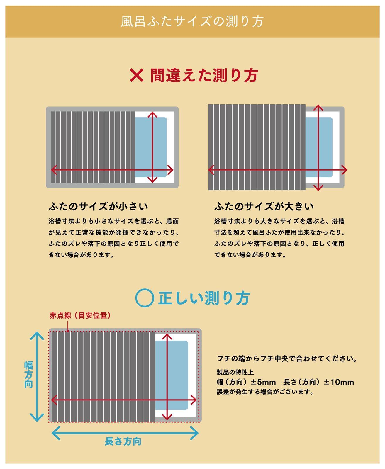 ■商品を選びの際は浴槽のふちに十分かかるサイズをお選びください■商品の特性上、幅方向に対して±5mm 長さ方向に対して±10mm程度の誤差が生じる場合がございます