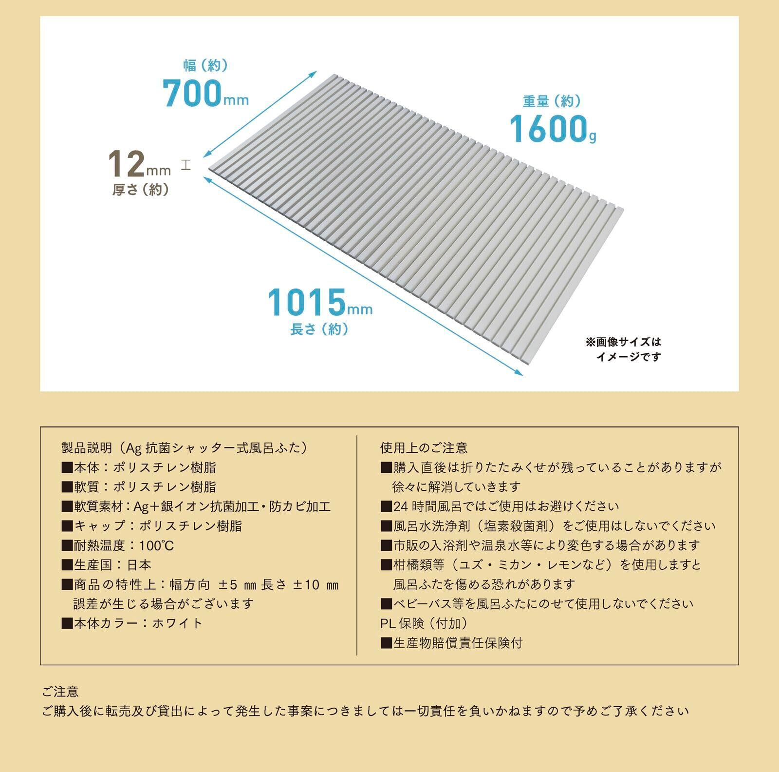 ミエ産業 シャッター式風呂ふた 製品サイズ 70×101.5cm ホワイト M10_WH Ag+銀イオン抗菌加工 防カビ加工 日本製