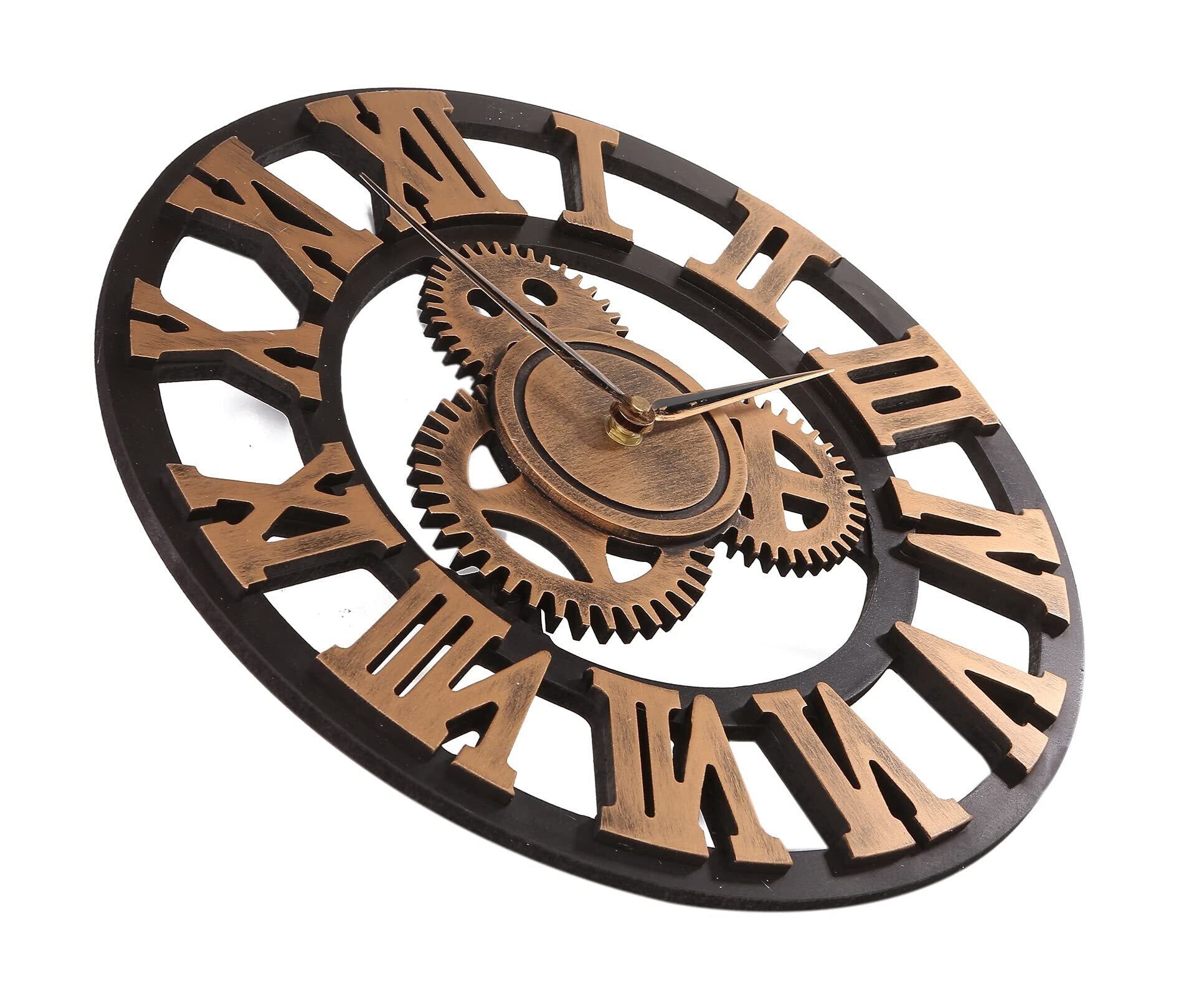 壁掛け時計 アンティーク風 レトロ ギア 歯車 木製 インダストリアル風 音がしない静穏 モダン 掛け時計 ウォールクロック (ゴールド)