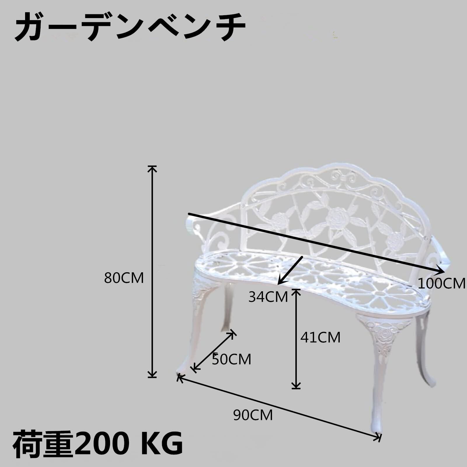 TangXiaoQiガーデンベンチ、メタルアルミニウムローズ、ガーデンポーチ公園前ポーチテラス屋外用 (白)