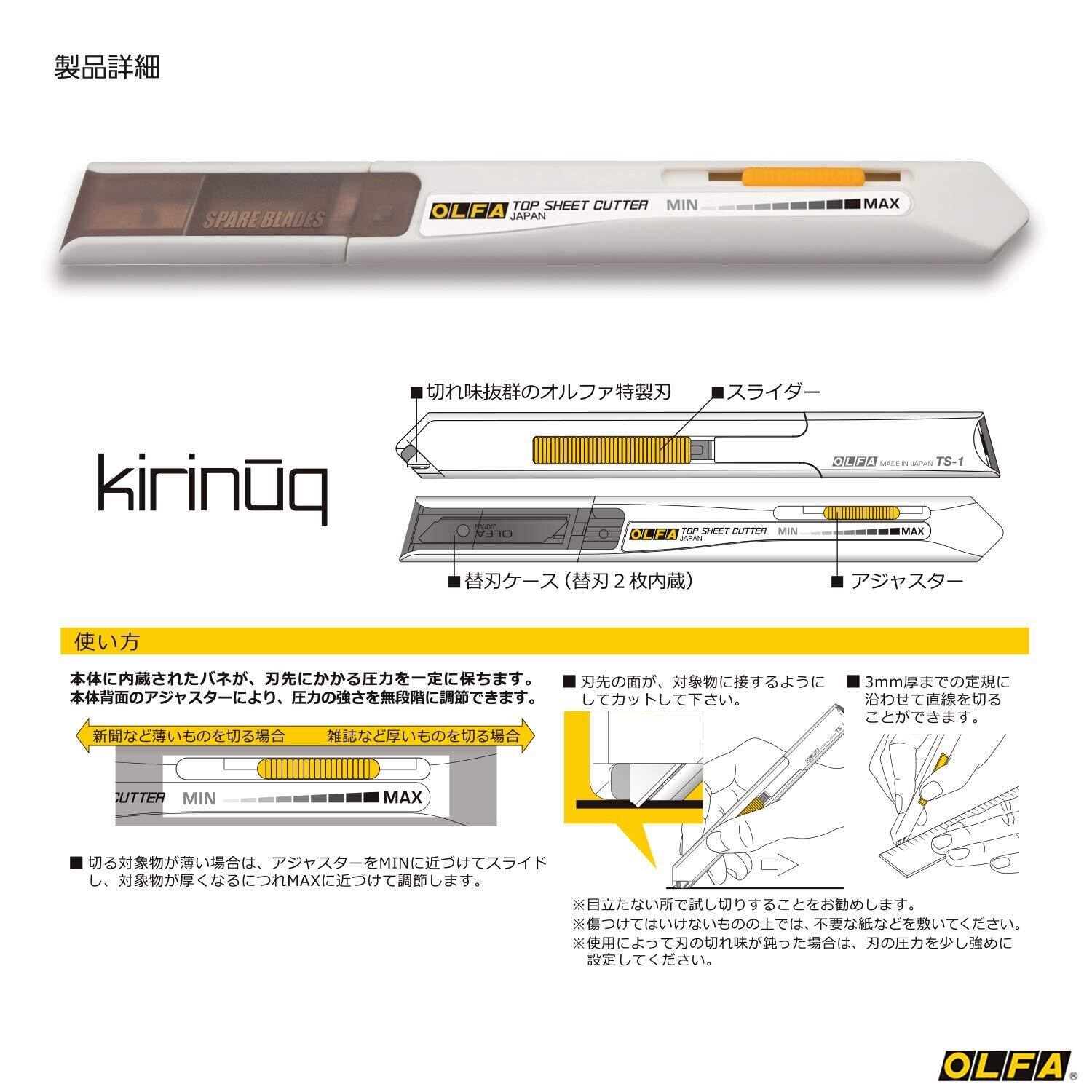 【ご不明点がございましたらお気軽にお問い合わせください!】: 商品に関するご質問やリクエストがございましたら、ぜひお気軽にご連絡ください。この「オルファ カッター キリヌーク 一枚切り 209BS」で、快適でスムーズなカッティング体験をお楽しみください!