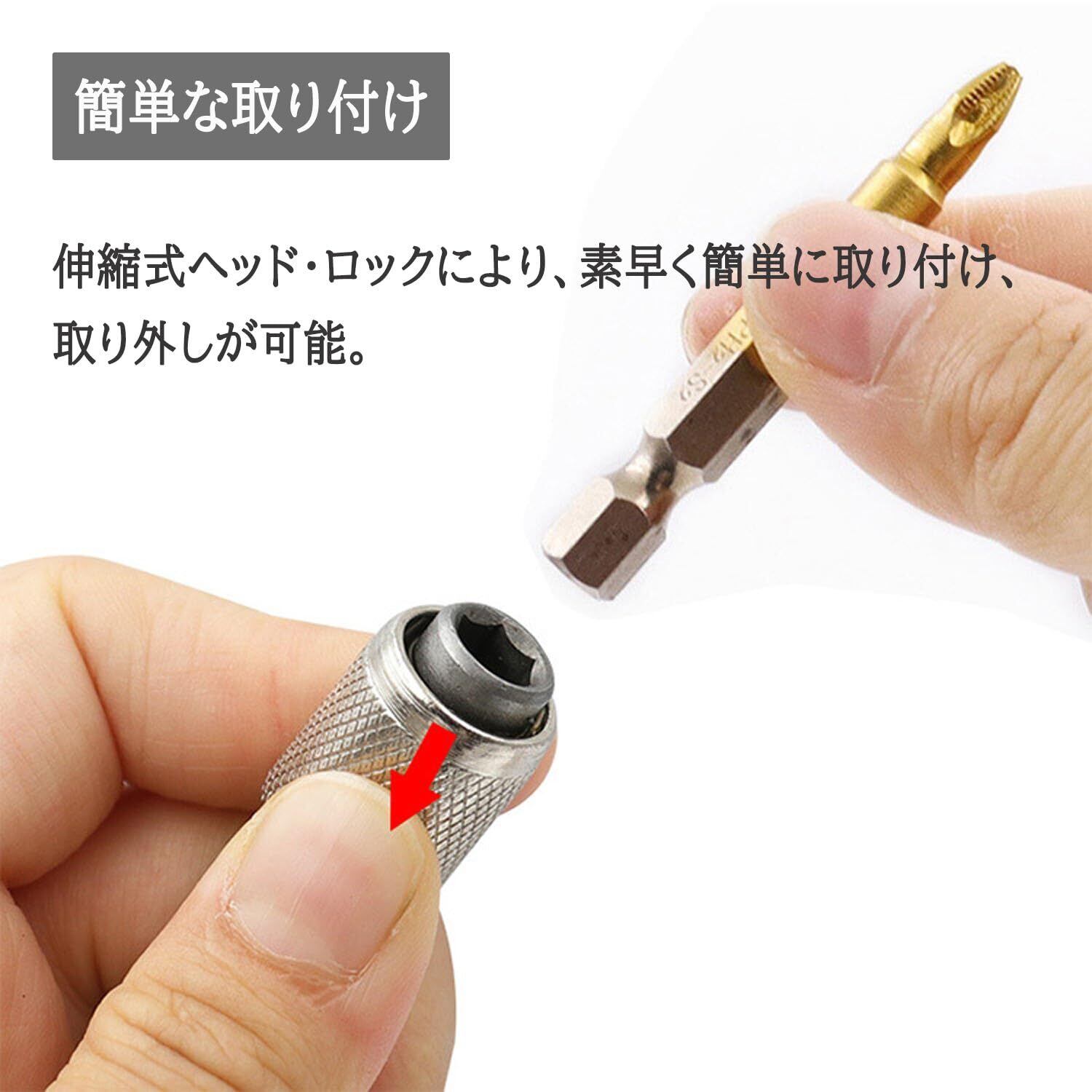 【多用途に対応!】: 各種六角ビットに対応するアダプターで、木材や金属、コンクリートなど様々な素材の作業に使用できます。一般的な家庭用から業務用まで、幅広く活躍するアイテムです。これがあれば、さまざまな作業がスムーズに進行します。