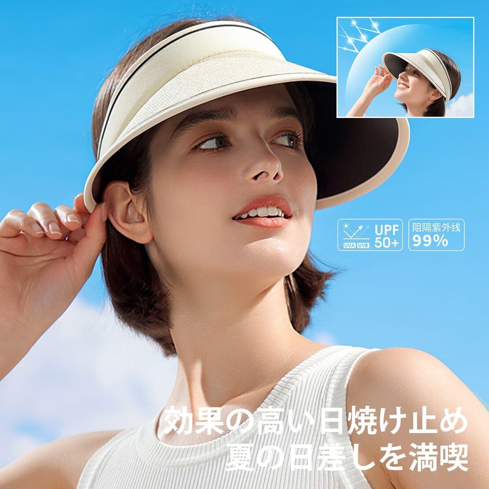 【新春セール】[ZVCXOE] サンバイザー レディース サンハット 麦わら UVカットUPF+50 日除け帽子 春夏 つば広 小顔効果 吸汗速乾 飛ばない 折りたたみ ストローハット アウトドアテニス ゴルフ スポーツ 自動車