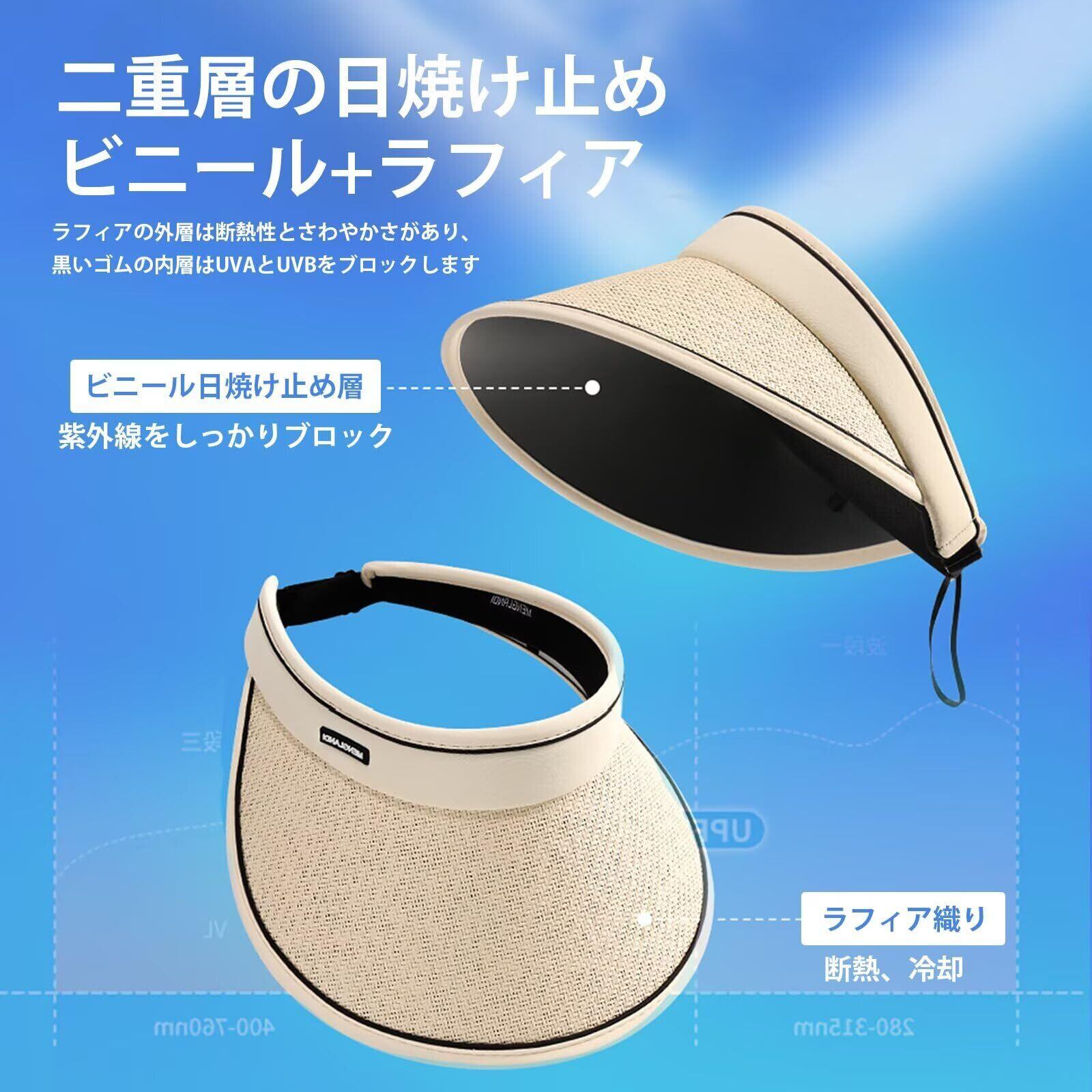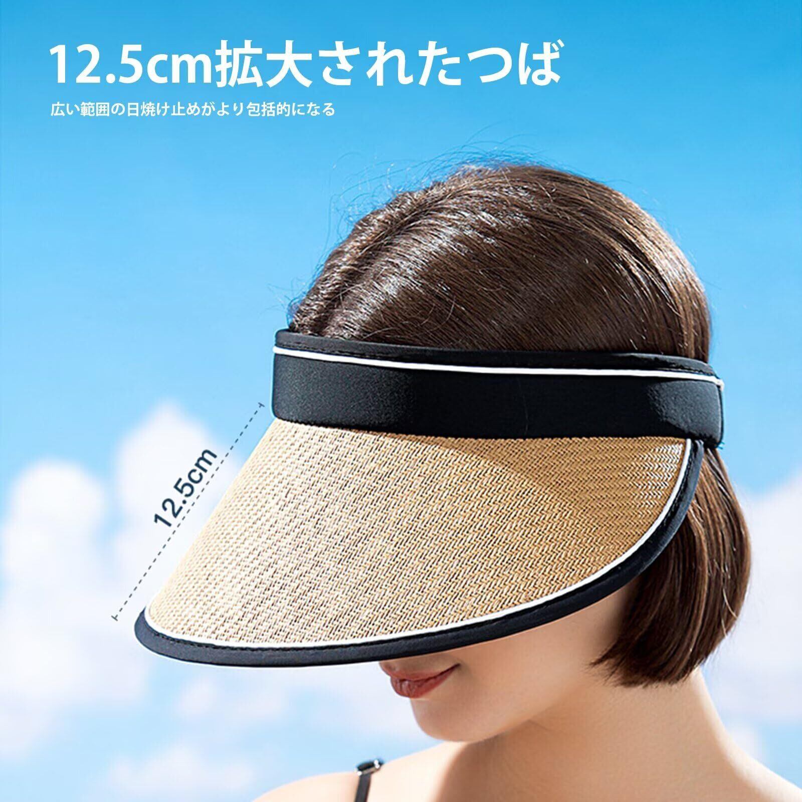 [ZVCXOE] サンバイザー レディース サンハット 麦わら UVカットUPF+50 日除け帽子 春夏 つば広 小顔効果 吸汗速乾 飛ばない 折りたたみ ストローハット アウトドアテニス ゴルフ スポーツ 自動車
