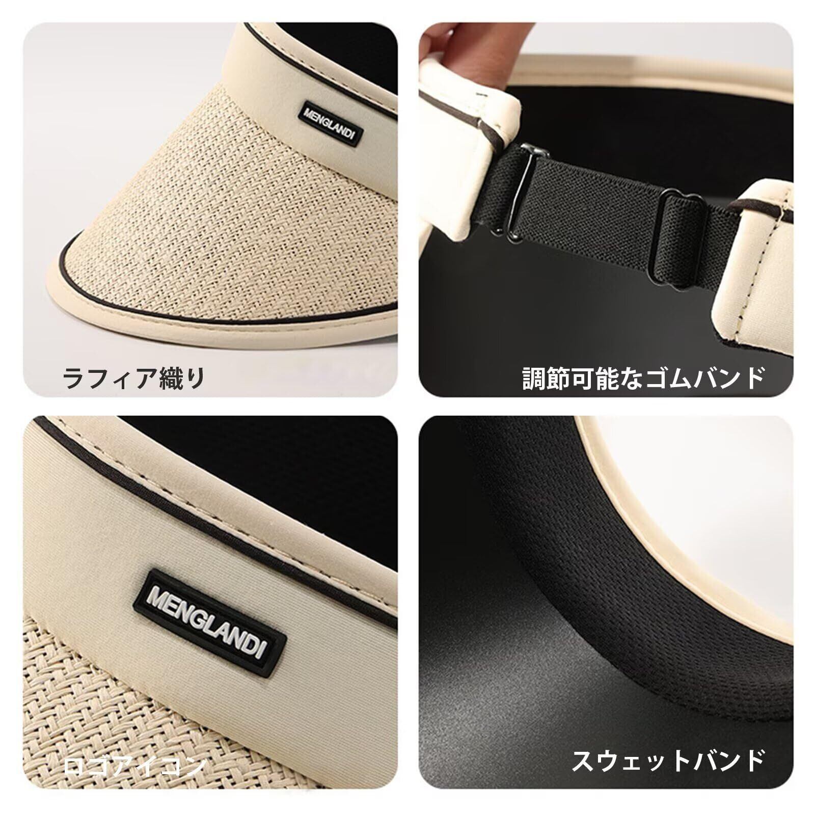 サンバイザー レディース サンハット 麦わら UVカットUPF+50 日除け帽子