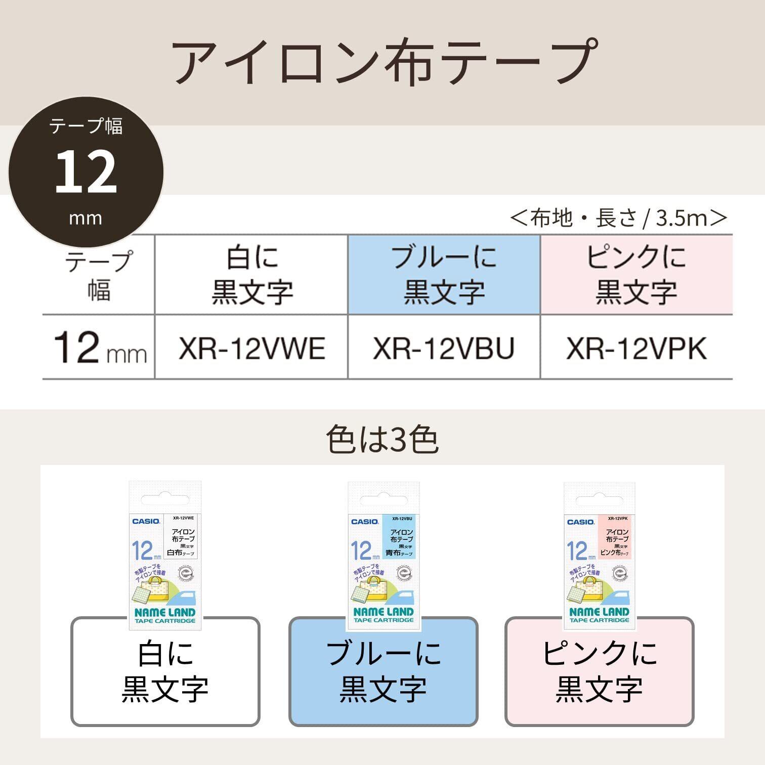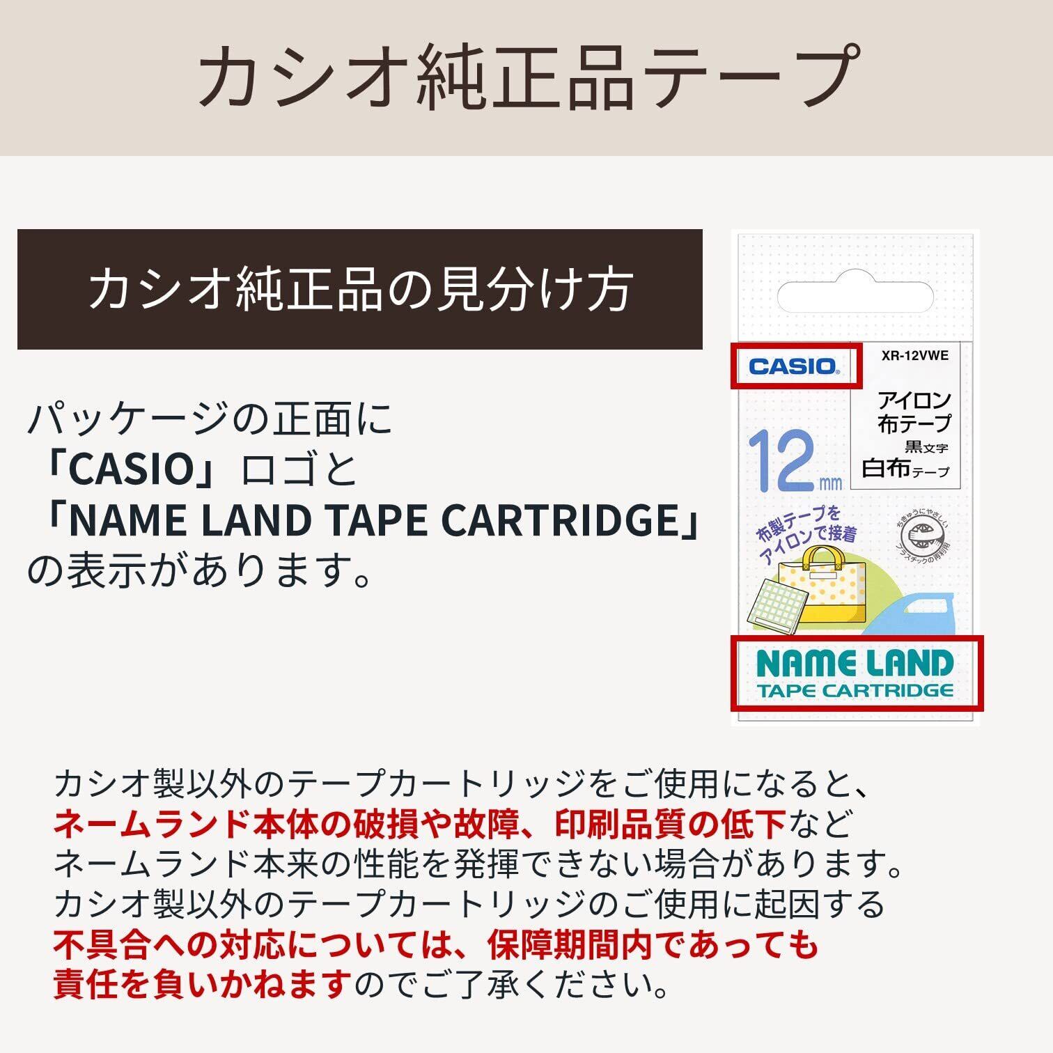 カシオ ラベルライター ネームランド アイロン布テープ 12mm XR-12VWE 白