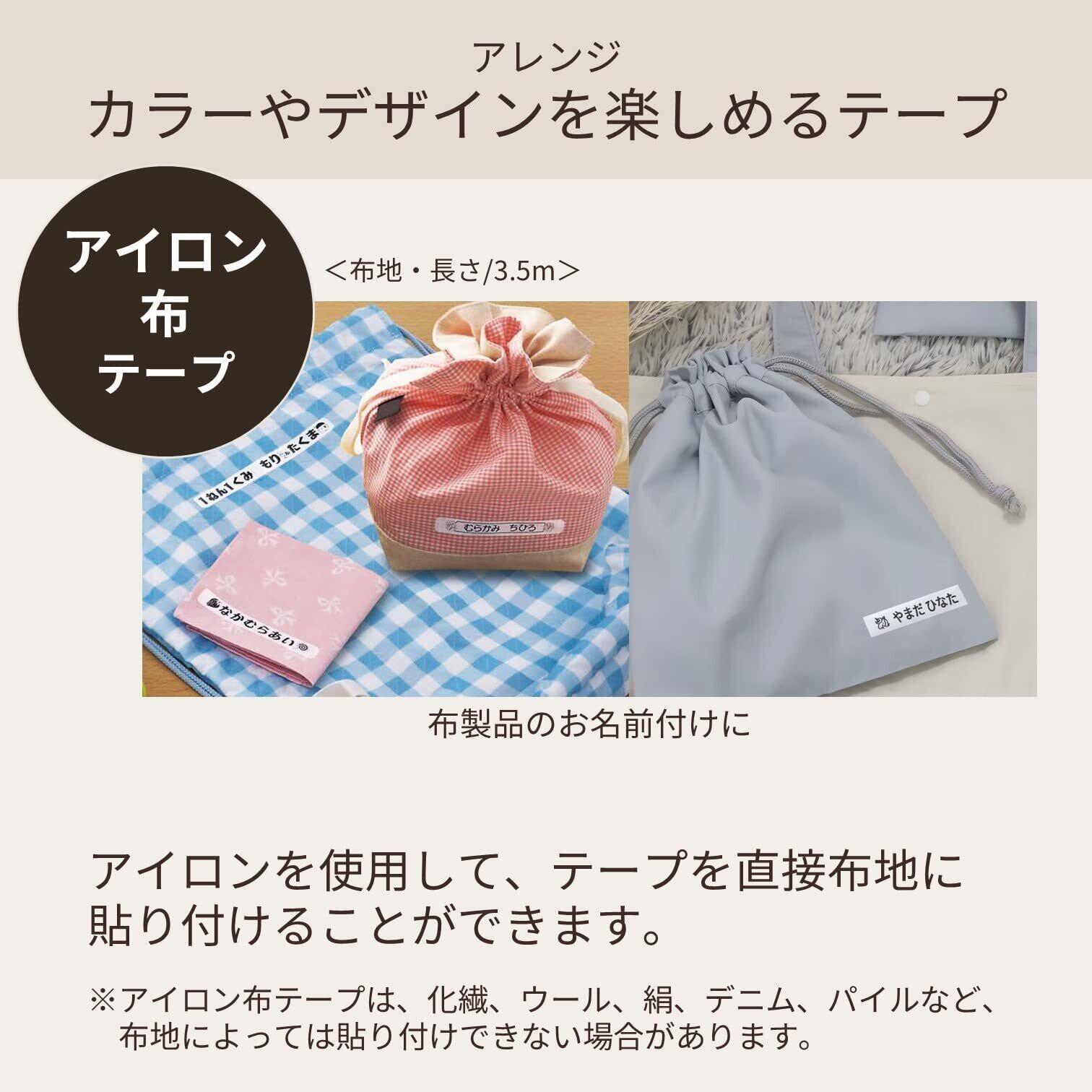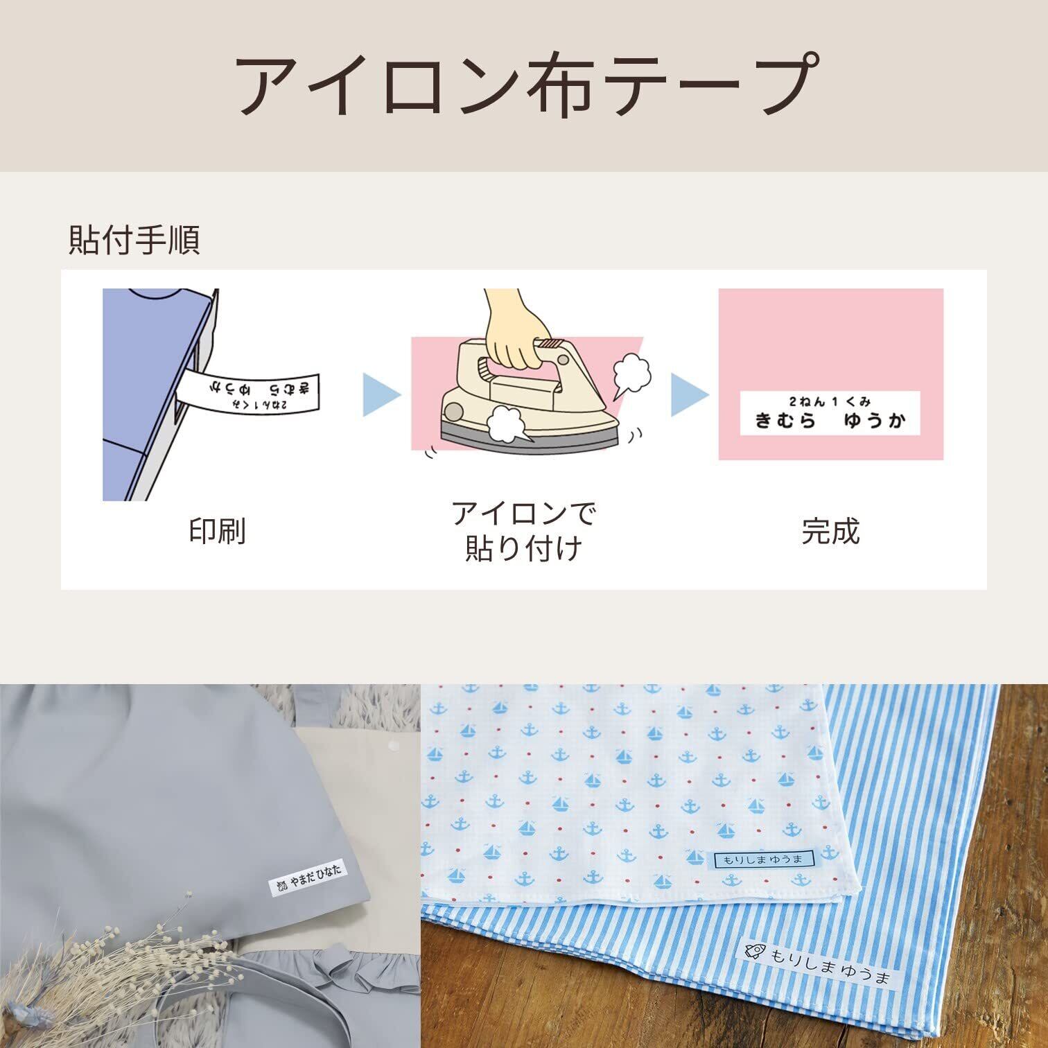ネームランド用テープ。アイロンを使用して、テープを布地に貼り付けることができる。