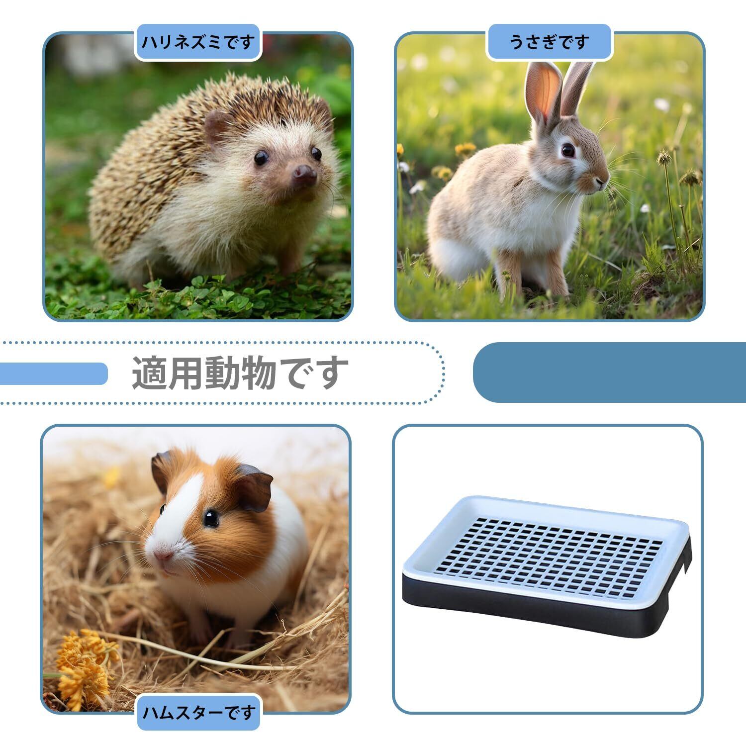 【適用範囲】25X19.5X3cmサイズの小動物用トイレは、リス、モルモット、ハリネズミなどの比較的小さな動物に適しています。トレイは比較的小さく、成ウサギや比較的大きなモルモットには合いませんのでご注意ください。寸法が正確であることを確認するために、ペットのサイズを測ってください。