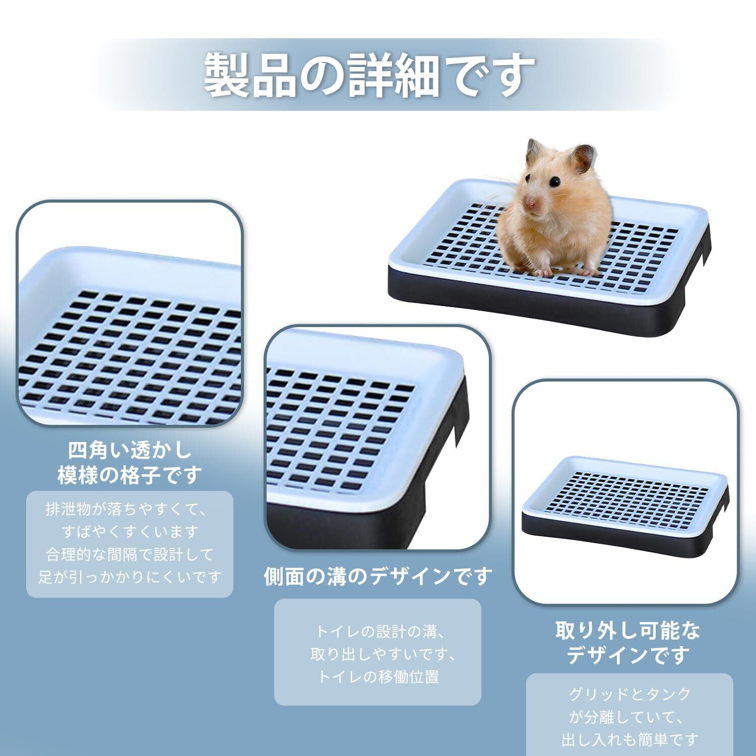 【商品の特徴】メッシュデザインでペットパッドの交換が簡単、取り外し可能なデザインでお手入れが簡単です。 トレイのメッシュは、ペットの糞を落としやすく、ペットの足が穴にはまるのを防ぐために、適切な間隔をあけています。