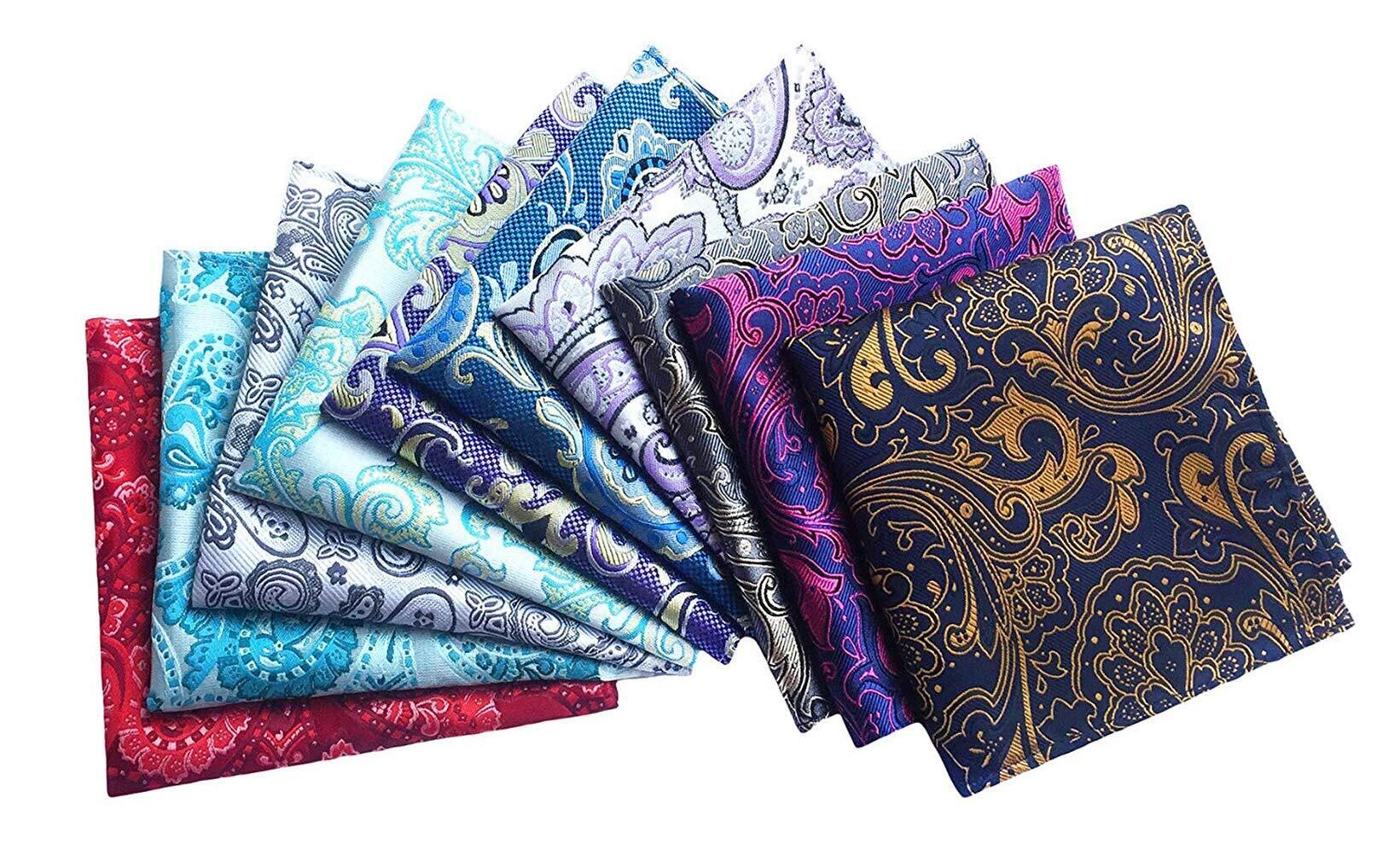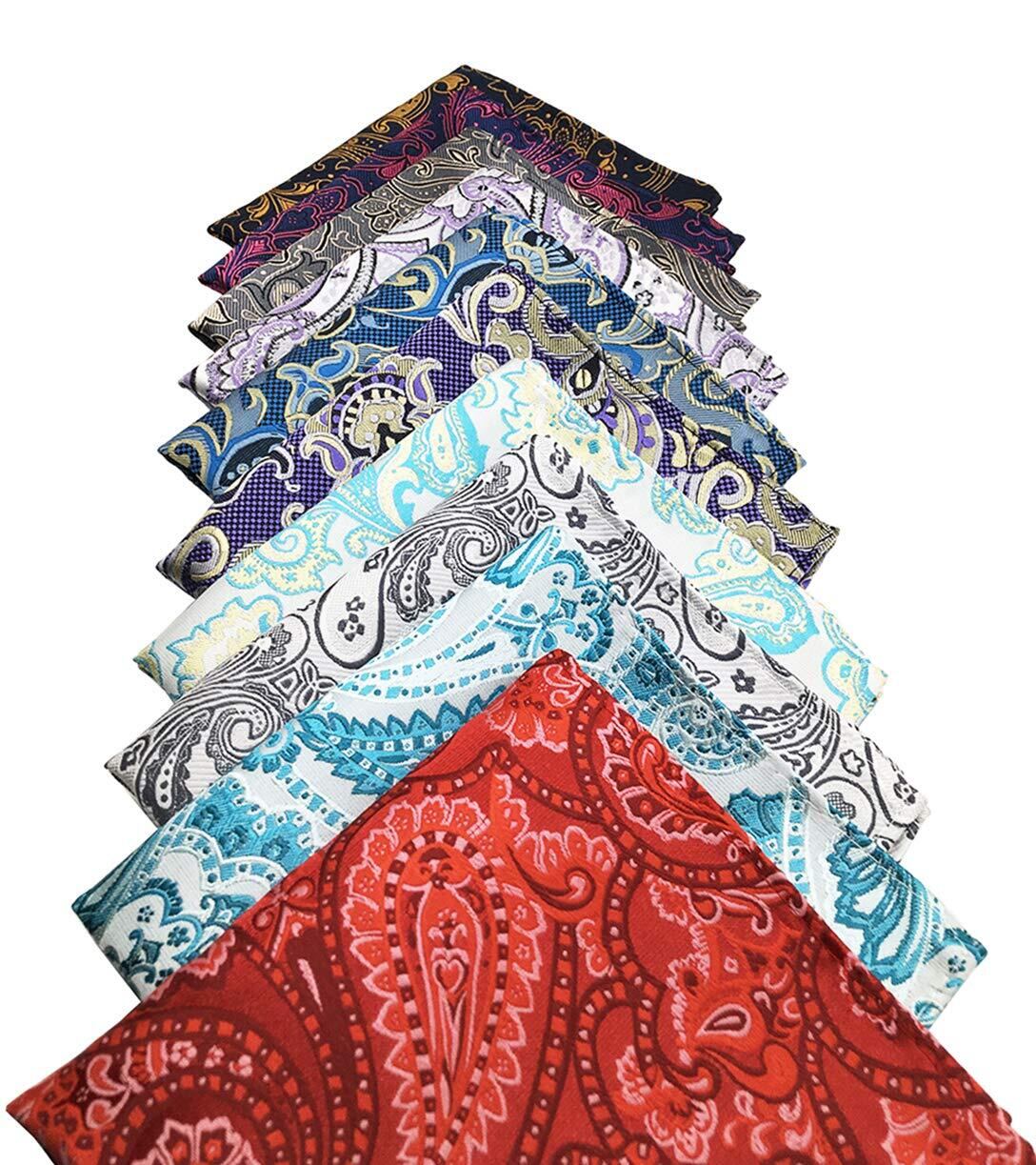 【多彩なデザインでコーディネートを楽しもう!】: 10枚セットのポケットチーフは、それぞれ異なる柄が入っているため、毎日のファッションに合わせて自由に選んでいただけます。結婚式やおしゃれなディナー、カジュアルなデートなど、シーンを問わず使えるデザインですので、あなたのセンスを引き立てます。