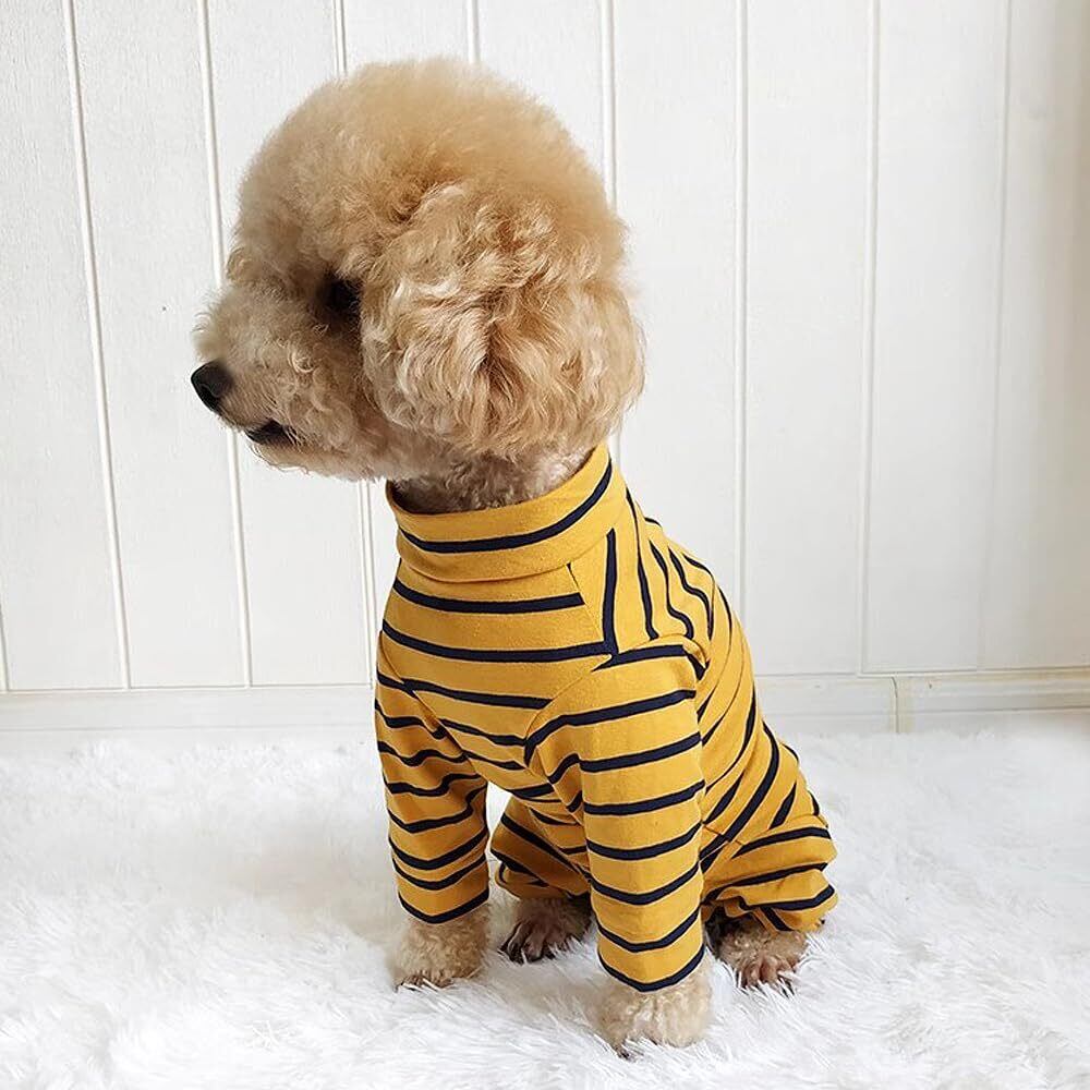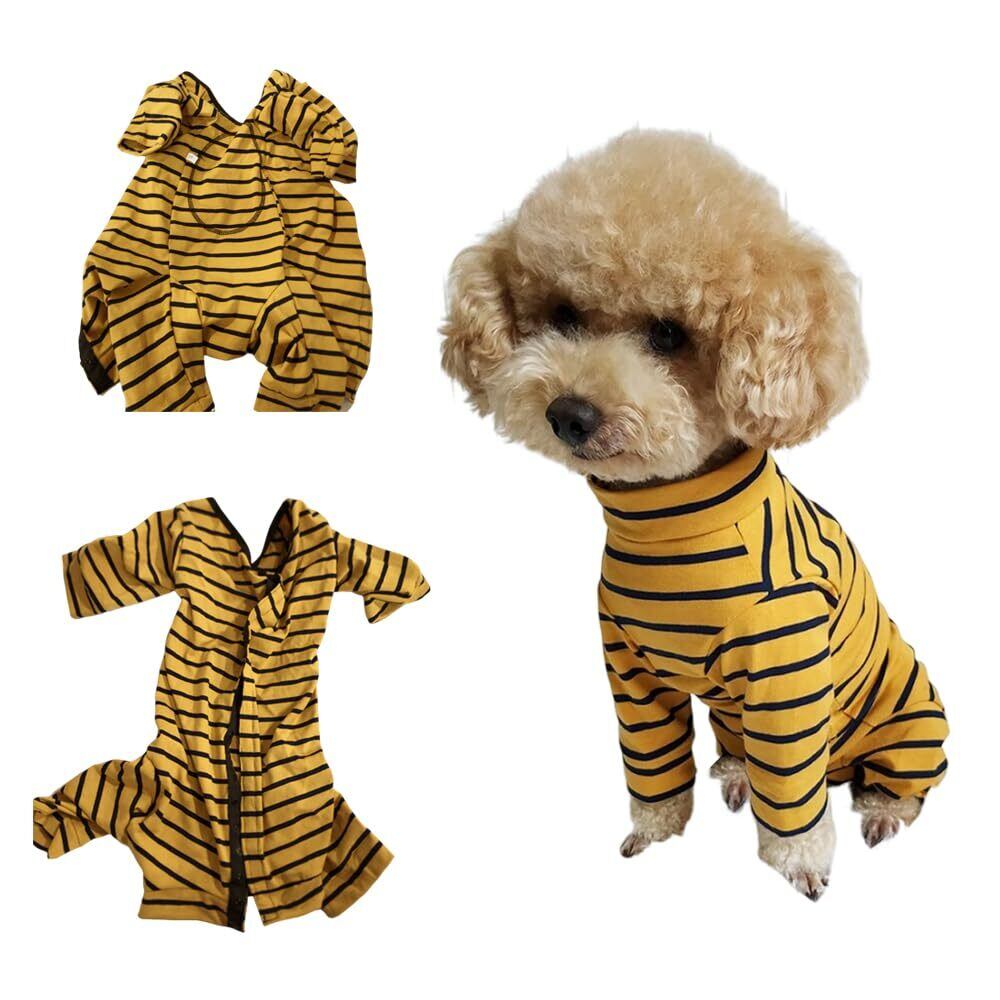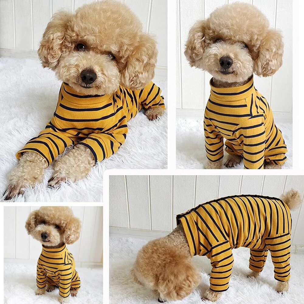 【愛犬のケアをサポートする術後服!】: 「術後服 犬」は、愛犬が快適に過ごせるよう特別に設計された介護服です。優れた通気性を備え、気になる傷口をしっかりと保護します。避妊手術後や傷舐め防止に最適です。おしゃれなイエローボーダー柄で、愛犬の個性を引き立てます!