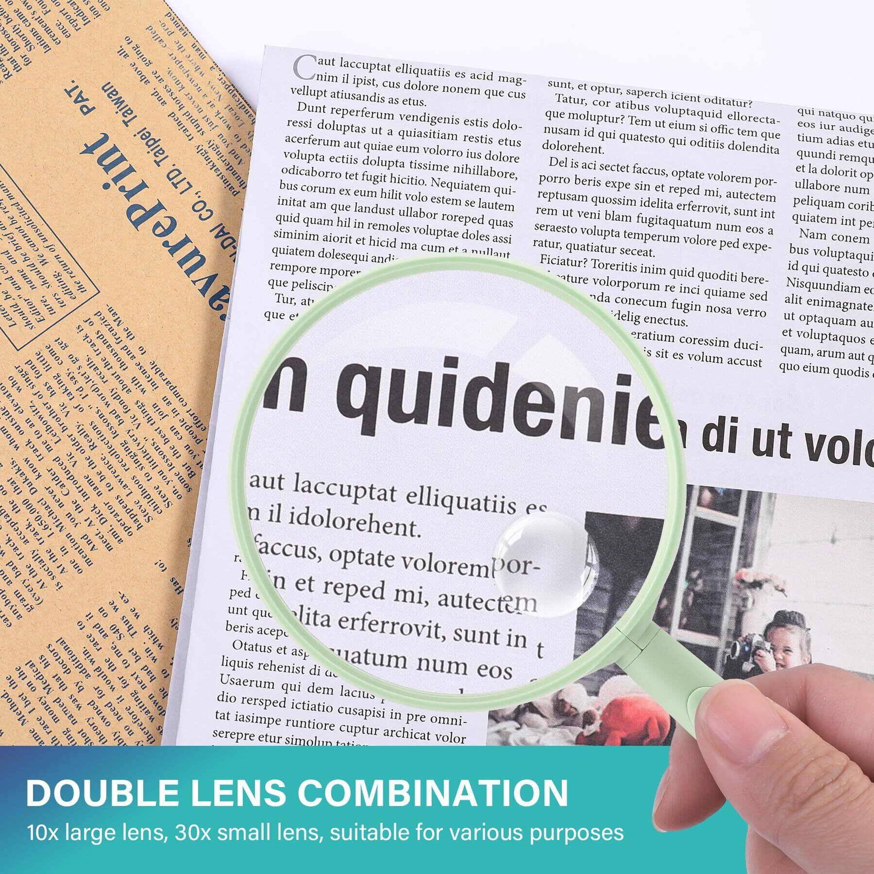 【特価商品】拡大鏡 10倍と30倍 手持ち ルーペ 大きく 見やすい 軽い シンプルで読み物に便利なサイズ 直径75mm(グリーン)