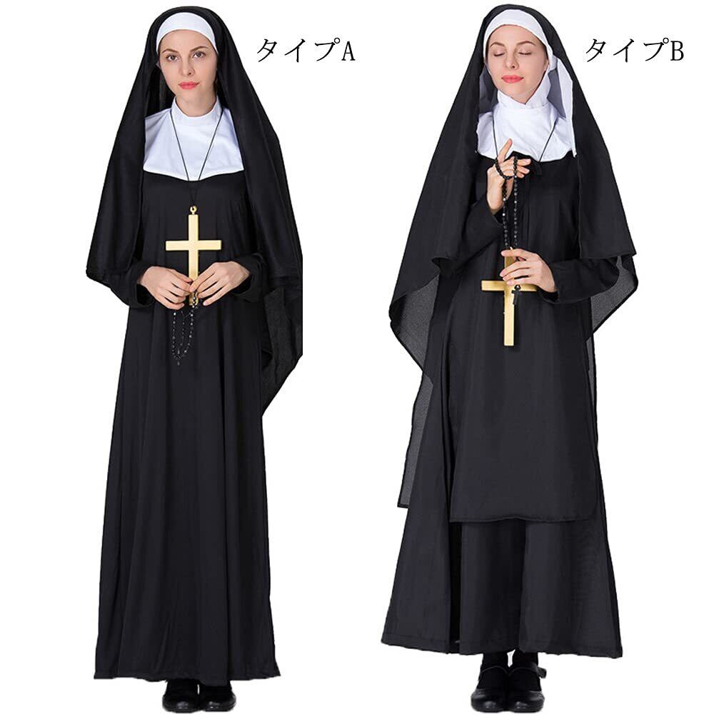 [GIYOMI] シスター服 ハロウィン コスプレ衣装 修道女仮装服 修道服 シスターコスチューム レディース キリスト教衣装 十字架付き 演出服 2タイプ